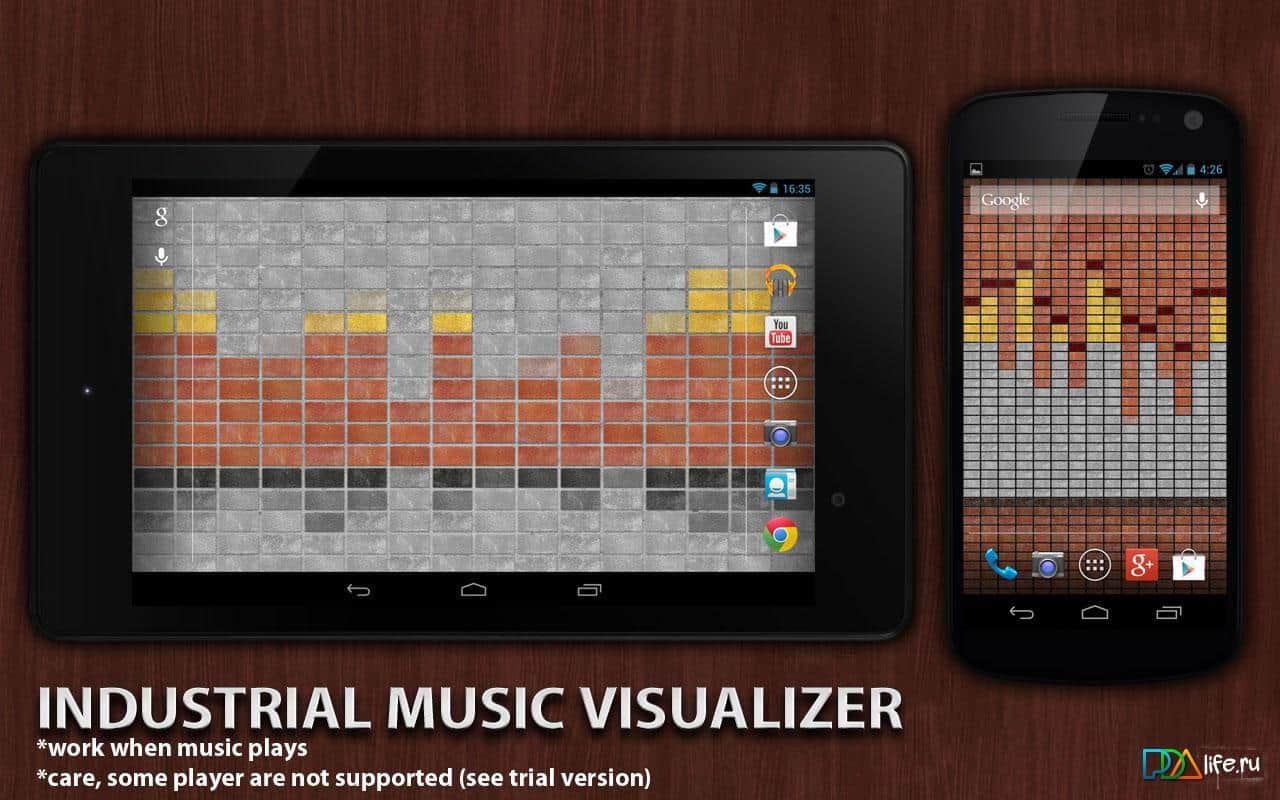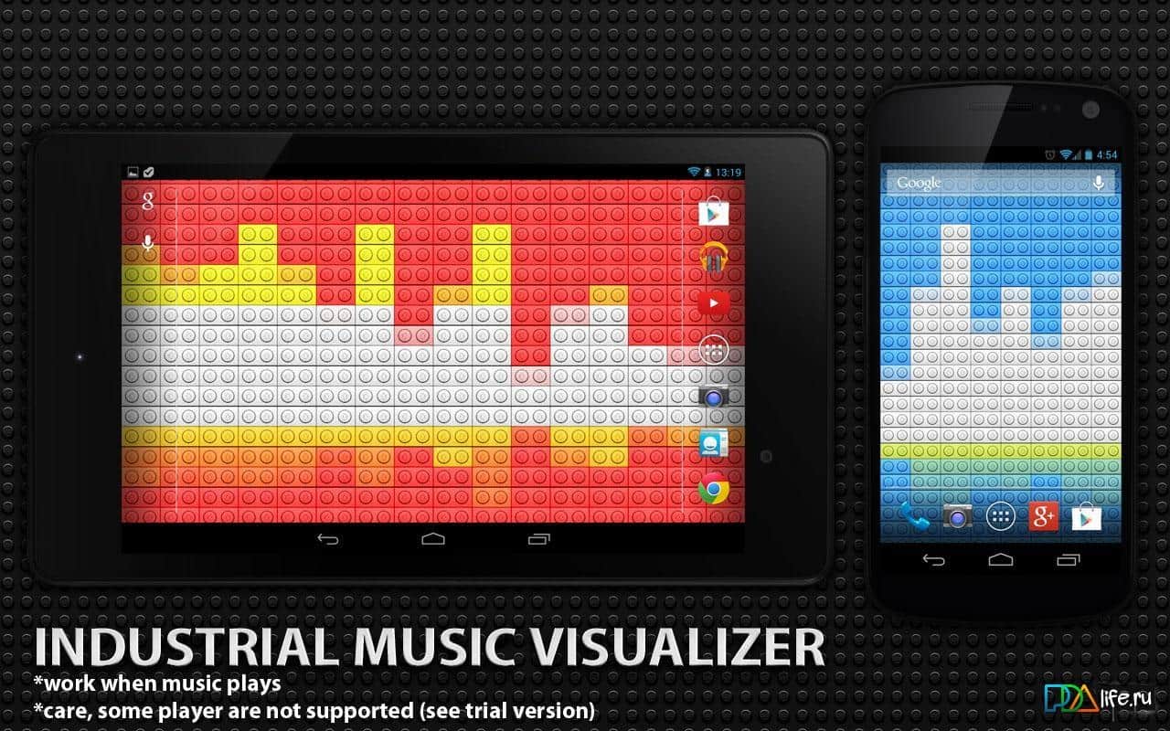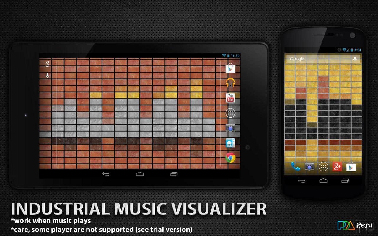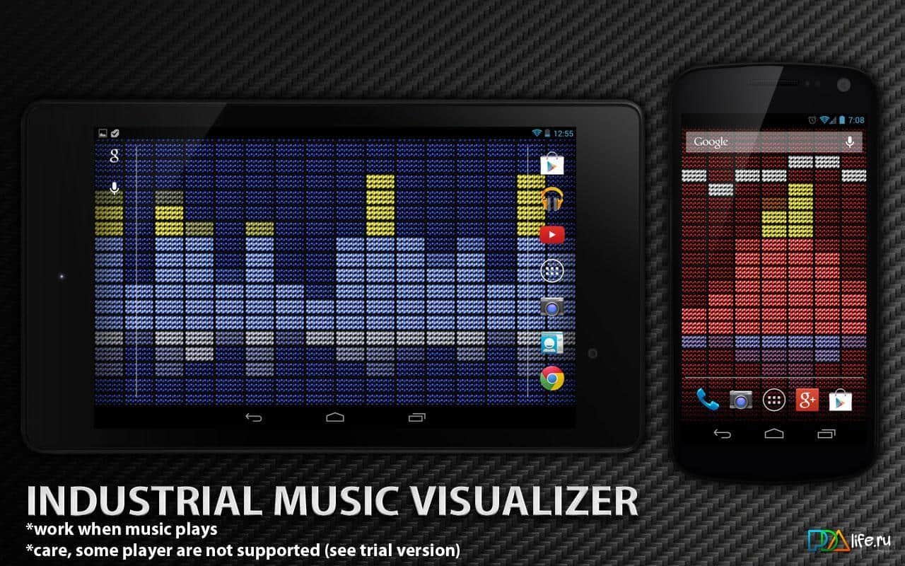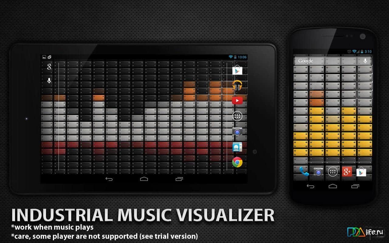 Индустриальный Визуализатор / Industrial Music Visualizer – красивые живые обои для вашего андроид устройства, которые смотрятся весьма интересно и являются визуализатором музыки. В настройках вы можете выбрать размер, цвет и тему, а так же многое другое, что сделает экран вашего смартфона/планшета стильным и оригинальным.