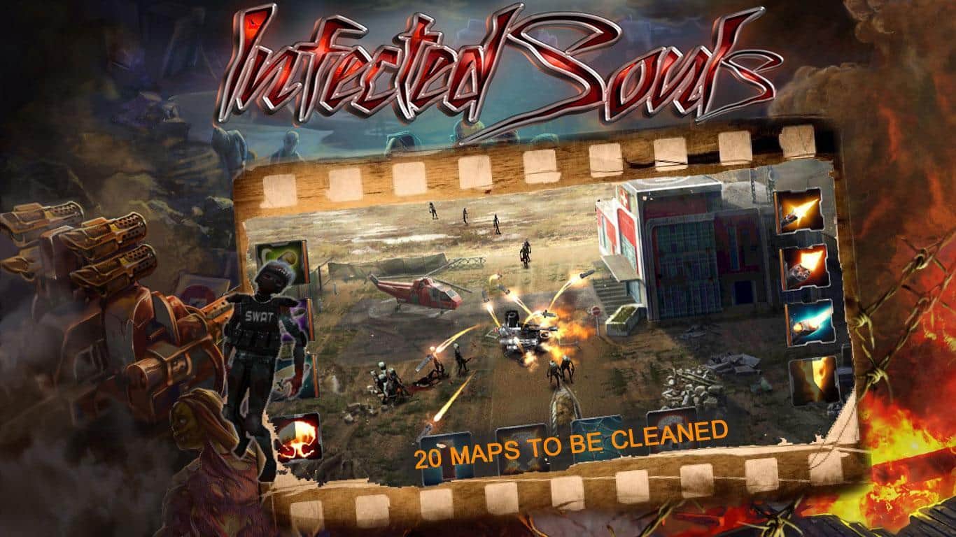Infected Souls - Андроид игра, главная тематика которой апокалипсис биологического оружия. Ваша задача установить самую мощную пушку, улучшать ее в различных направлениях, разрабатывать патроны и снаряды. На вас будут нападать толпы зомби. Но в критические моменты вам помогут четыре специальных скила. Всего в игре 50 вариантов улучшения орудий и двадцать карт для зачистки.