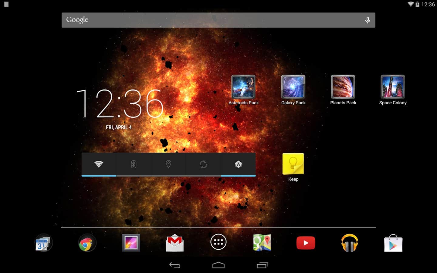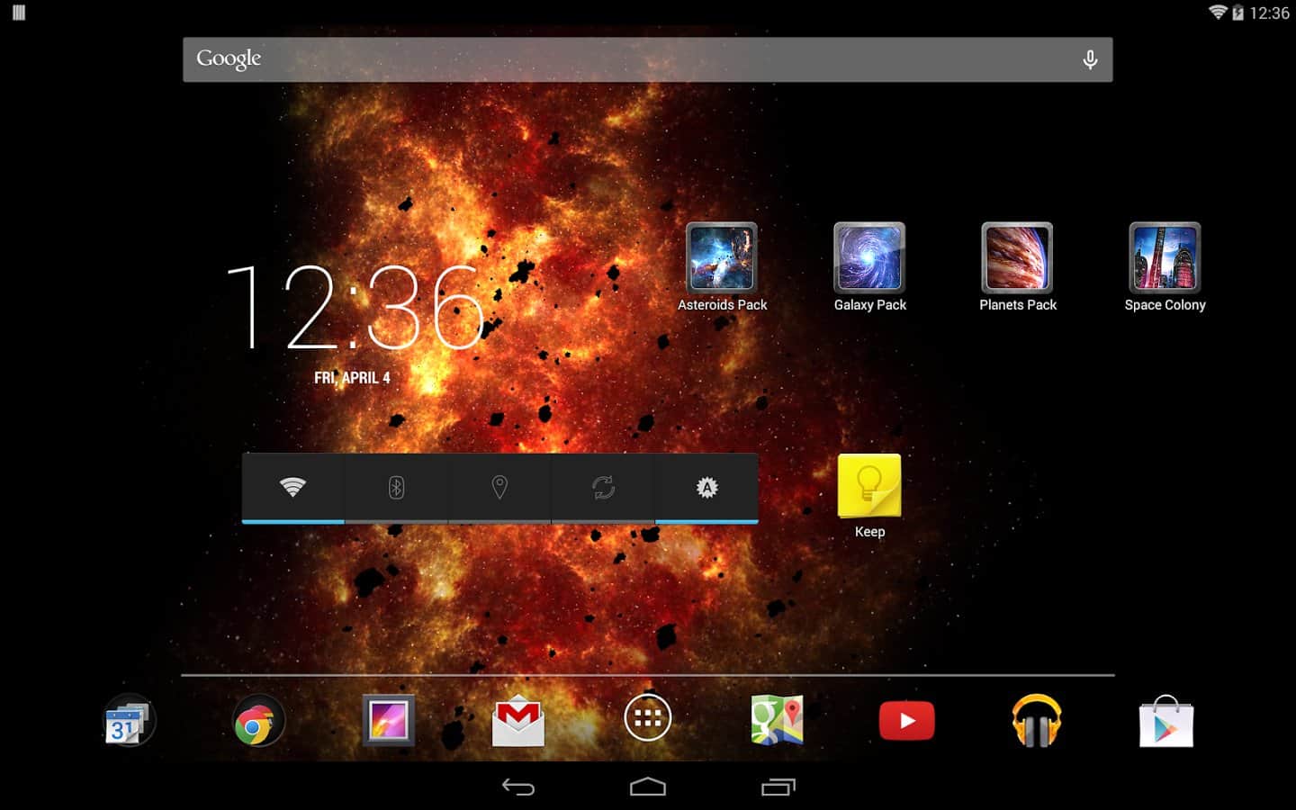 Inferno Galaxy - Шикарные обои для любителей космоса. Выполнены очень качественно, и без излишеств. Это живые обои украсят ваш рабочий стол. Вы можете настраивать картинку по своему усмотрению, делая её либо динамичной, либо статичной. Исполнены в красно-оранжевом фоне, что придает им необычайную красоту. Они были оптимизированы по максимуму, и не будут требовать так много заряда батареи, как их аналоги. Имеют очень простой и понятный интерфейс, плюс к этому в настройках вы сможете включить, или выключить наличие астероидов. Вы можете сами двигать их, или же включить управление акселирометром, и наслаждатся видом. Путешествуйте по космосу, не сходя с места.