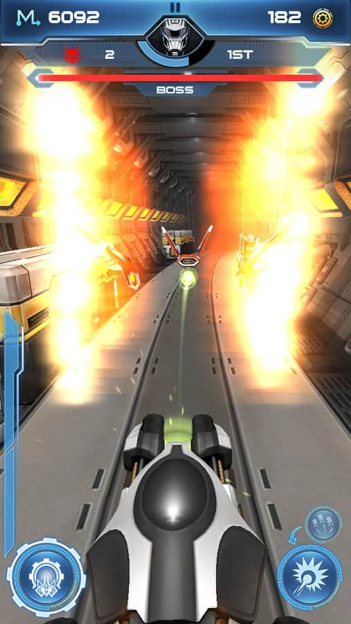 Infinite OverDrive - Гоночный боевой раннер на андроид, где вам предстоит воевать с роботами. Ваше транспортное средство – единственное что у вас есть. Вы пытаетесь сбежать с базы врага на одном из их аппарате. В вашем арсенале всего несколько пушек. Вы будите ездить по длинным коридорам, убивая врагов, которые будут на вашем пути. Всего в игре восемнадцать увлекательных уровня, и функция улучшения транспортного средства.
