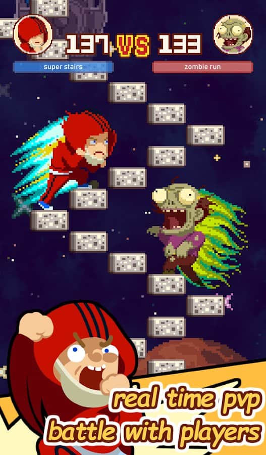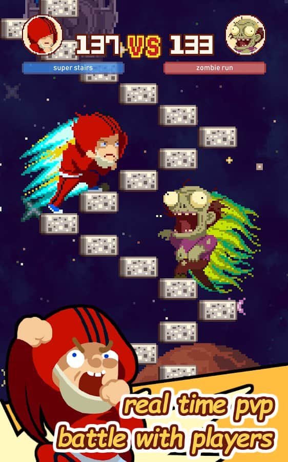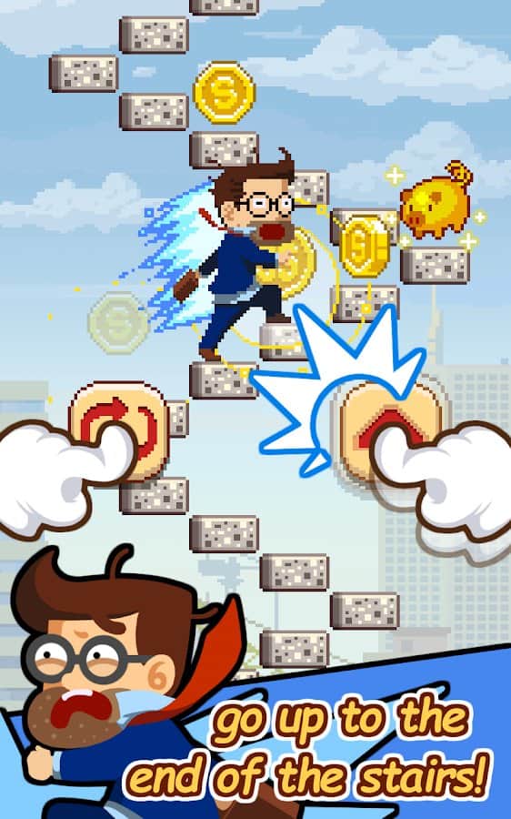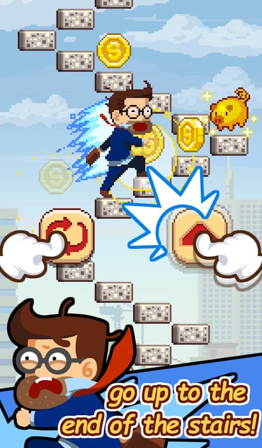 Infinite Stairs – веселая игра, где вы будете контролировать героя, который поднимается по бесконечной лестнице в небо. Цель этой игры состоит в том, что вам необходимо вовремя направить своего героя по лестнице, которая постоянно меняет свое направление. Эта задача не из легких, вам постоянно нужно будет контролировать игру, и быть сосредоточенным иначе ваш герой упадет вниз и игра для вас закончиться. Пройдите как можно больше пути состоящего из плавающих каменных ступенек и попробуйте разблокировать всех персонажей в этой игре: боксера, вампира, теннисиста, учительницу, строителя, репера и многих других.