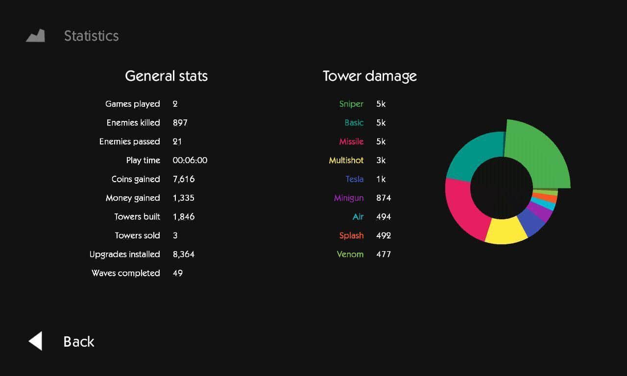 Хорошая игра от инди-разработчиков, причём, ни в одной подобной игре на андроид я не встречал такой обширной ветви развития, есть здесь 17 видов карт, не говоря уже про редактор уровней + всё в игре на русском. Минимализм тут присутствует конечно во всём. Из минусов: не становится на карту памяти, но и весит она немного. С третьего раза дошёл до 80-го lvl в простом режиме.
