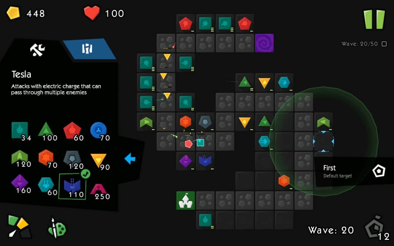 Infinitode – стратегия из жанра tower defense на андроид, с минималистичной графикой. В этой игре вы возьмете под свой контроль многочисленные башни и будете с помощью них защищать свою базу. Ваши враги наступают к назначенной цели по извилистому пути, и вашей задачей будет не дать им пройти дальше. Расставляйте на пути врагов многочисленные башни, каждая из которых обладает уникальными свойствами и атаками. Разрабатывайте свою тактику ведения боя, при этом учитывая все особенности врагов и их умения. За каждого уничтоженного врага вы будете получать деньги, которые сможете потратить на модернизацию башен и их улучшение. Открывайте для себя новые уровни или с помощью редактора создавайте свои собственные.