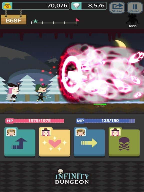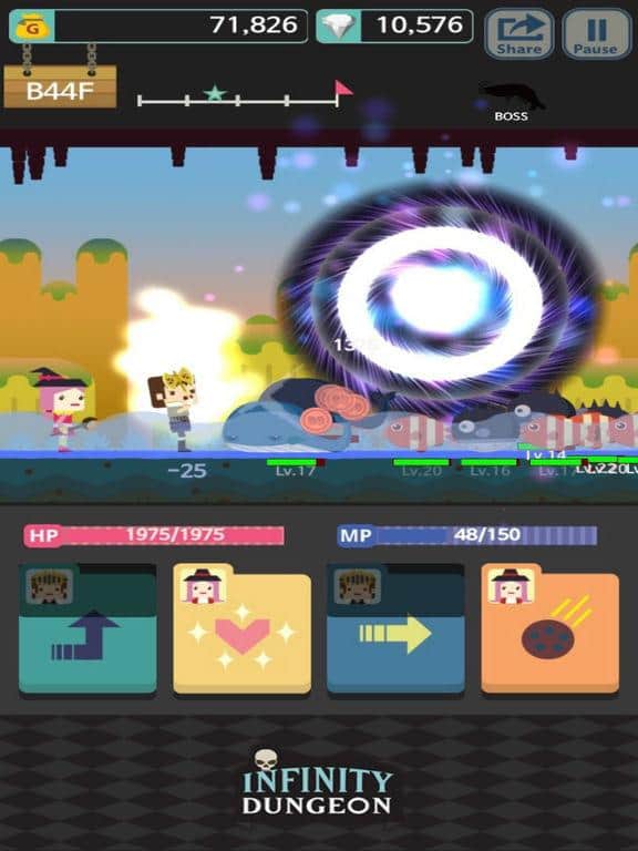 Infinity Dungeon V – аркадное RPG для IOS, где вы будете исследовать темные подземелья и сражаться с врагами. В этой игре вашей главной задачей будет собрать непобедимую команду и отправится на поиски приключений. Подземелье этой игры состоит из нескольких уровней и чем ниже вы будете спускаться, тем более сильные враги будут появляться на вашем пути. Вступайте в битву с врагами и применяйте уникальные способности каждого героя, чтобы одержать победу над врагом и получить в качестве награды опыт. Обменивайте опыт на улучшение своих способностей и замену экипировки, а также не забывайте собирать по пути монетки и кристаллы. Спускайтесь все ниже вглубь подземелья и атакуйте врагов специальными возможностями героев.