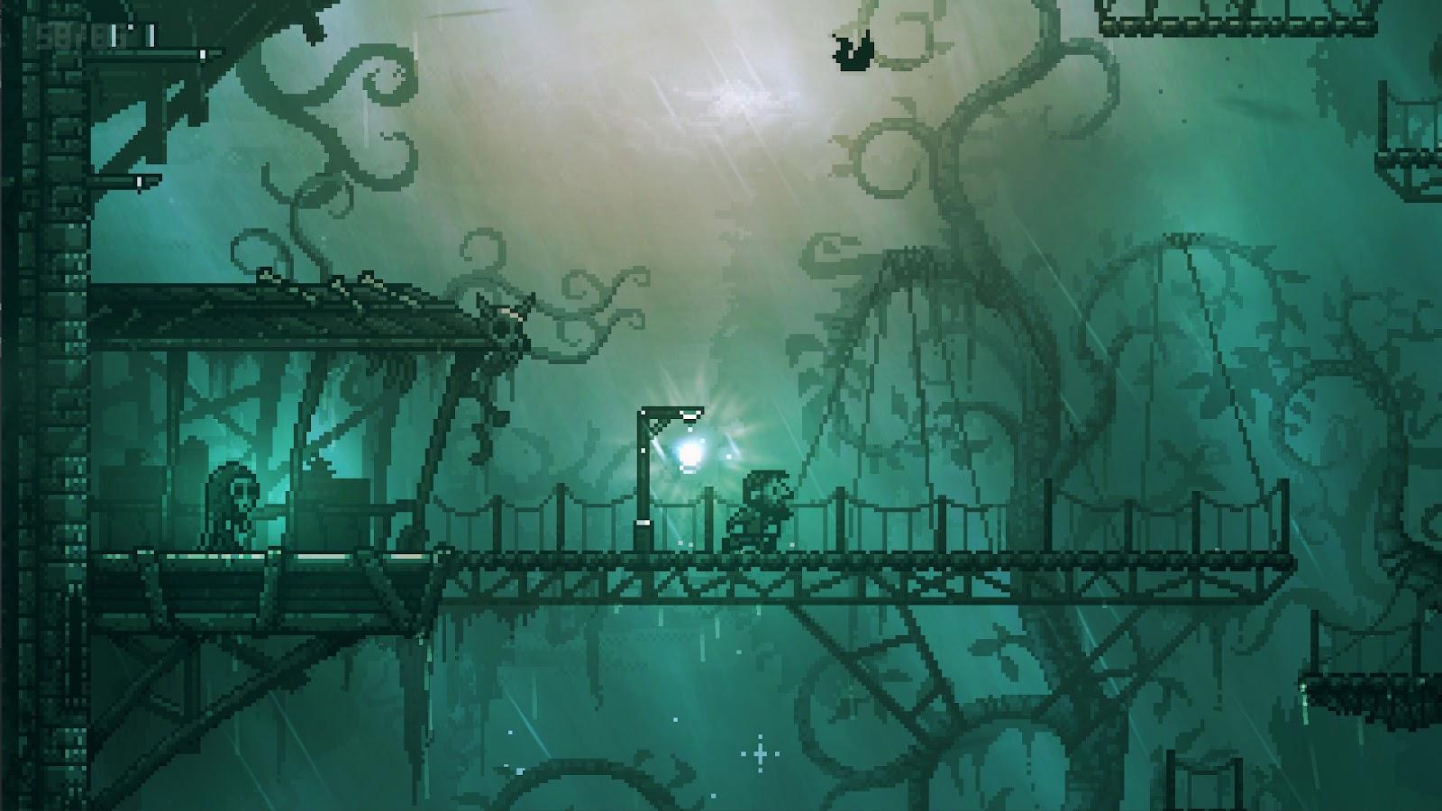 Графика:Это не просто просто одно тонный пиксель-арт, а пиксель-арт с тенями,светом и частица. Все такое плавное красиво. Анимации радуют глаз.