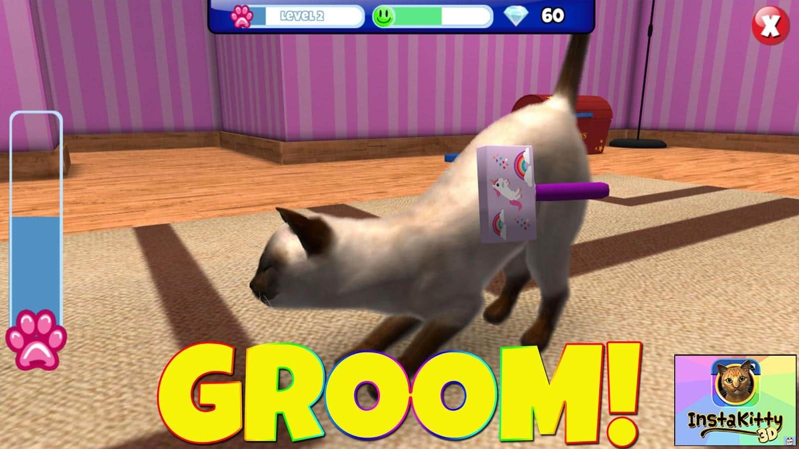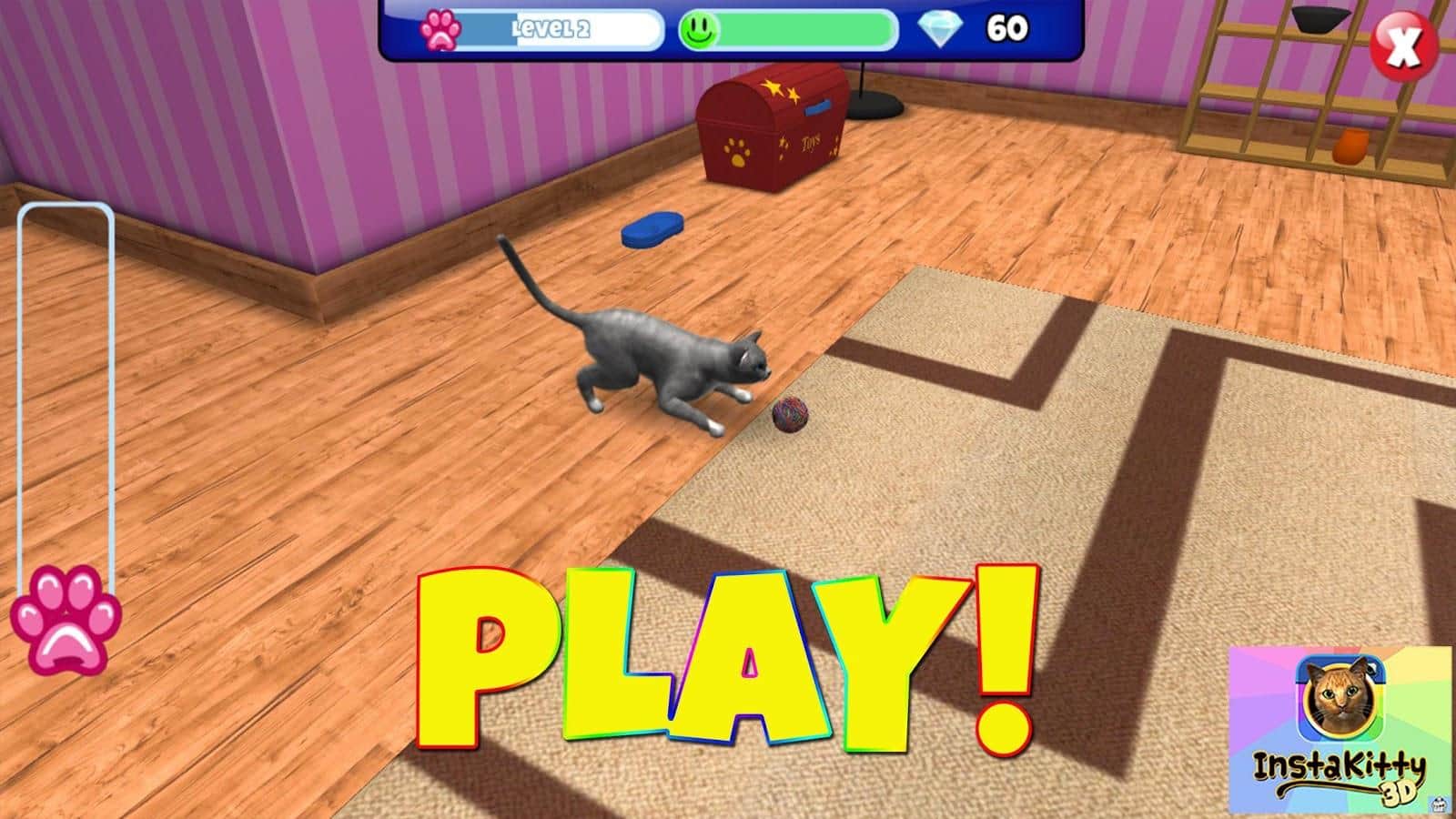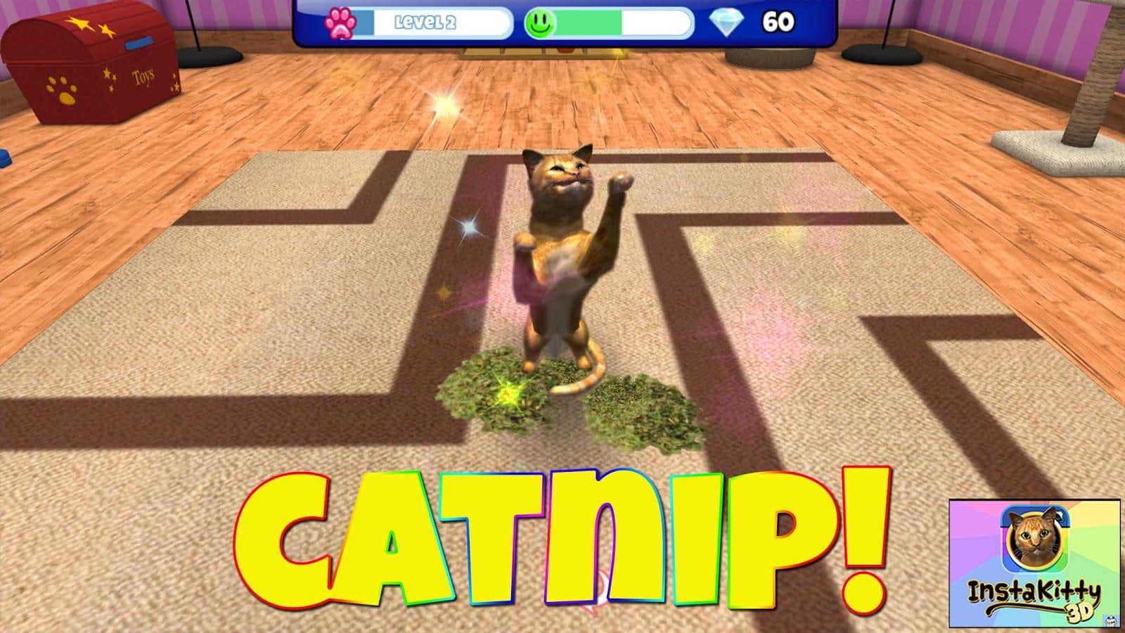 InstaKitty 3D – Откройте для себя одну из самых самую красивых и реалистичных симулятор кота. Получайте в подаврок своего собственного кота, назовите его, и сделать его частью вашей повседневной жизни. Кормите его, играйте с ним и делайте всё , чтобы вы делали с настоящим котом. Можно делать отличные фото и коллажи вместе со своим четвероногим другом, одевать на него различные одежды. Танцевать и многое другое. Так-же своим питомцем можно поделится с друзьями через социальные сети. Помимо этого можно изменять декорации вашей комнаты: обои, мебель, ковры и многое другое.