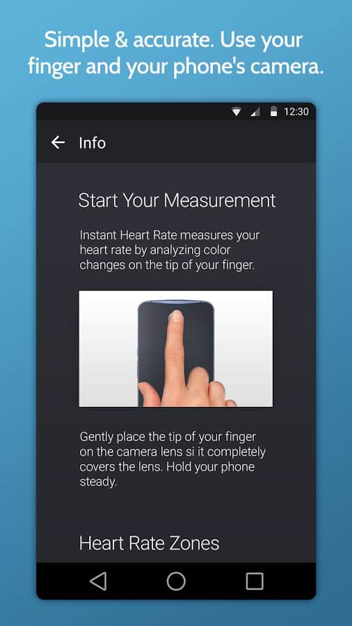 Instant Heart Rate - Pro - Боитесь за свое здоровье, и постоянно отслеживаете его? Тогда просто воспользуйтесь этим приложением. Оно всего за пару секунд подсчитает ваш пульс, и выдаст вам всю информацию о нем. Это не просто счетчик пульса, он так же расскажет вам, что стоит сделать что бы снизить пуль до нормы. Воспользоваться им очень просто, все что вам нужно это запустить приложение и приложить палец к вашей камере, подождав всего 10 секунд, во время которых желательно не двигать рукой, вы увидите результаты, и сможете даже сохранить их.