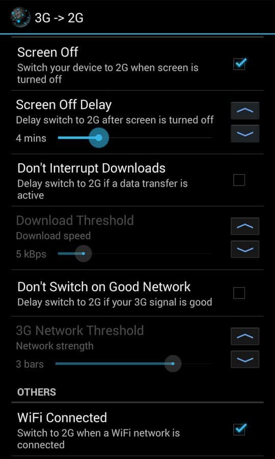 Переключатся в режим 2G при выключении экрана, не прерывая при этом никаких загрузок