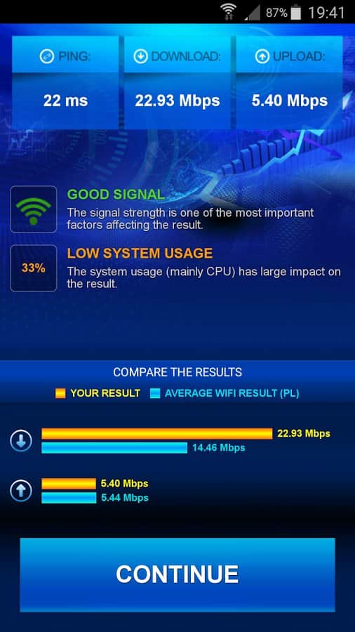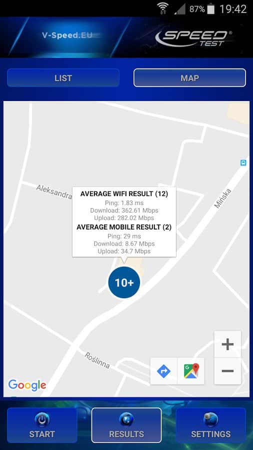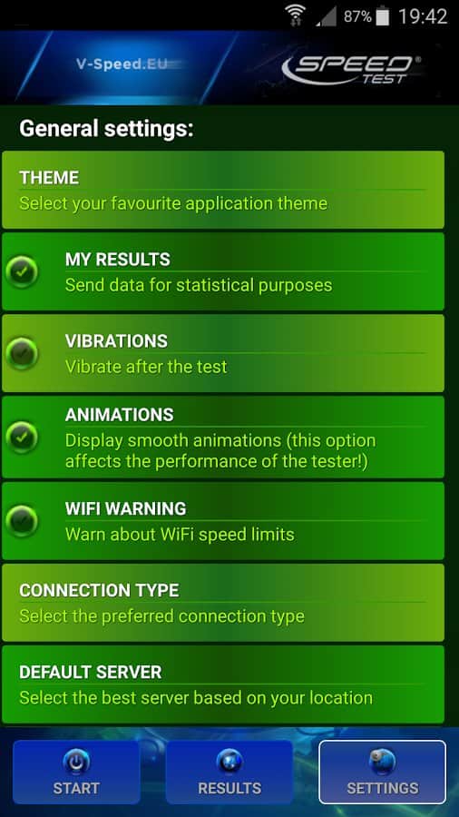 - Автоматический выбор тест параметров в зависимости от типа связи (Wi-Fi, мобильной сети 2G/3G)