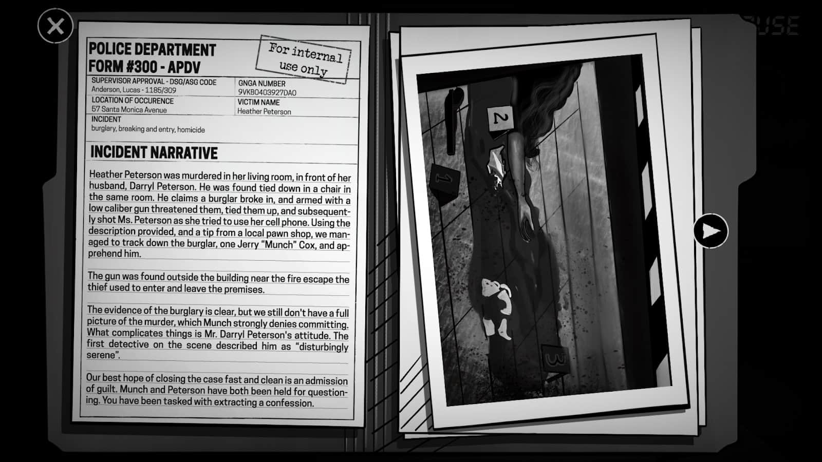 Идея крутая, чувствуешь себя труъ копом, когда начинаешь допрашивать подозреваемых и выуживать инфу, постоянно приходится обдумывать, что спросить и как обойтись без насилия. Не встречала подобных игр до этого (в This Is Police все-таки больше упор на разработку стратегии). Жаль, что демка, но это лишь вопрос времени, когда ее взломают, хотя на такой качественный проект я не пожалею деньжат.