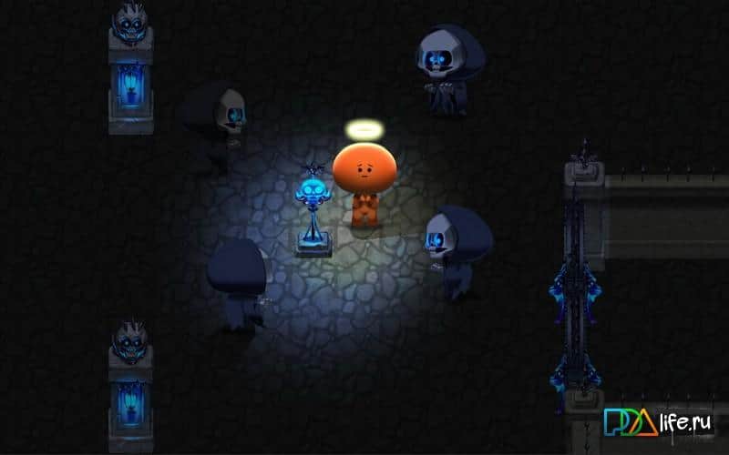Into The Darkness - приключенческая игра, в которой вы попадете в ад. Вы ангелочек и чтобы пройти реинкарнацию и превратиться в живое существо, вам предстоит отправиться в ужасное подземелье ада и искать там призраков с ключами. Путешествуйте по темному лабиринту, наполненному опасными монстрами и найдите специальный прибор, который поможет вам ориентироваться в темноте. Приносите специальные жертвы на алтарь и получайте за это награды и бонусы. В этой игре вас ждут три различные локации с 15 этапами в общей сложности.
