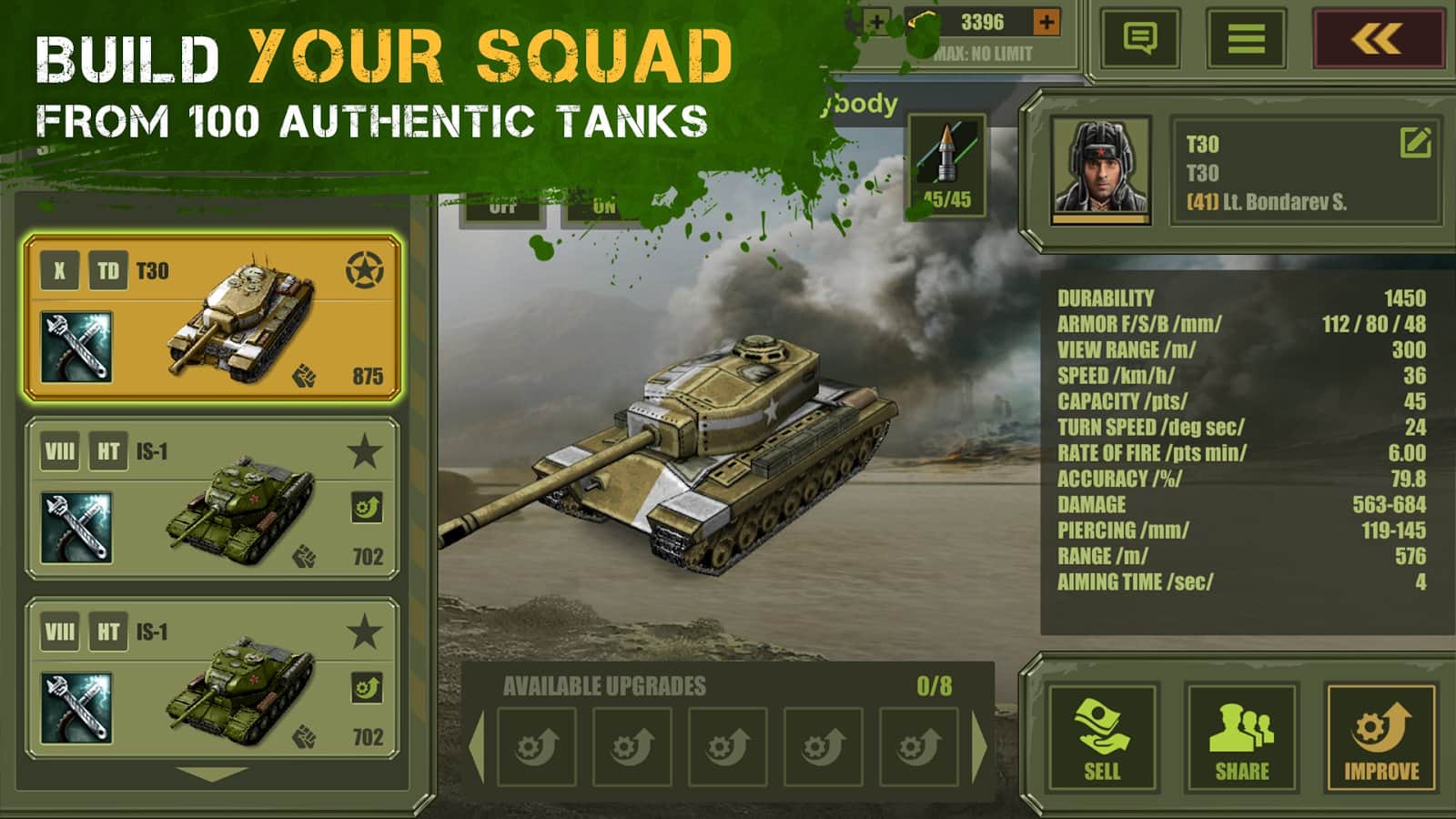 Iron 5: Tanks – стратегия на андроид, действия которой происходят в режиме реального времени. В этой игре вам предстоит взять на себя управление отрядом танков и уничтожать врагов в эпических схватках. Разрабатывайте свою стратегию, улучшайте тактику ведения боя и докажите всем игрокам, что вы самый сильны, быстрый и лучший. Захватывайте базы противников и начните свою игру управляя небольшими танками и плавно переходите на устрашающих железных монстров таких как: ИС-1, Тигр, СУ-85.. По ходу игры обучайте свой экипаж военному делу, а также не забывайте улучшать свою технику, добиваясь наилучшего результата, что поможет вам победить всех врагов.