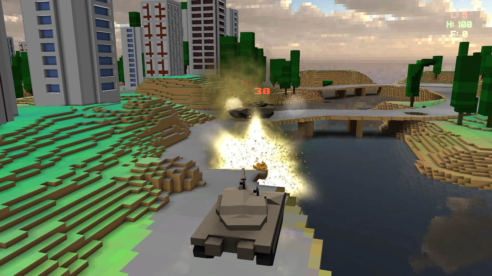 Кубичный мир настолько интересный, что к нему придумали увлекательный сюжет. Представьте, что вы один из военных в танке: локации без живых организмов (город, холмы и болото), разные модели и танки противников. Единственная цель - уничтожить всех и выжить. Научитесь не только метко стрелять, но и легко управлять таким сложным видом транспорта. Не подставляйте себя под открытый огонь, прячьтесь за разные предметы или конструкции, откуда будет легко нападать. Продумывайте стратегии боев, ведь придется сражаться еще и с командой.