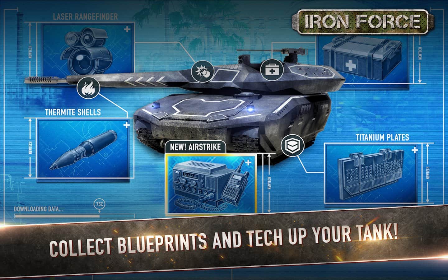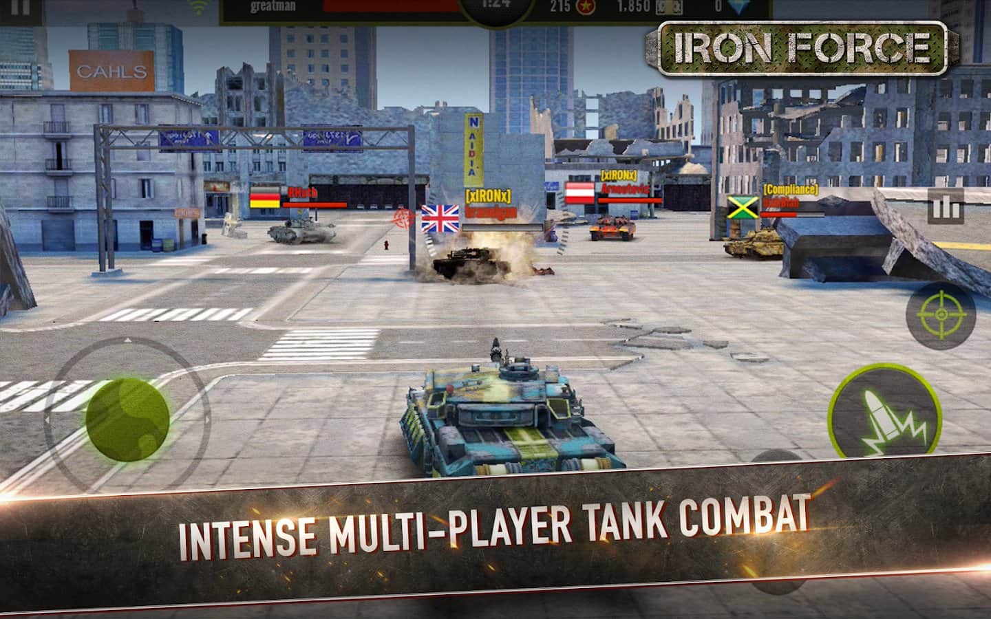 Iron Force - Великолепный танковый экшен на андроид в режиме онлайн. Вы можете играть как с друзьями, так и участвовать в случайных боях вместе с другими людьми. Так же вы можете собрать свою команду, или присоединится к другому легиону. Всего в игре пятнадцать мощных танков с различным вооружением. Разработчик обещает постоянно пополнять список. Так же если вы хотите потренироваться, вы можете поиграть против ботов.