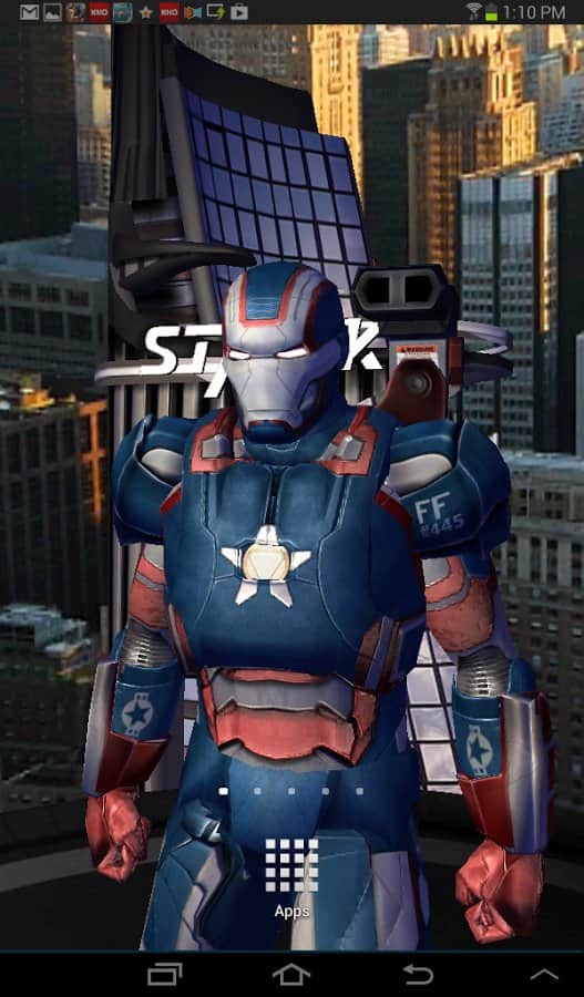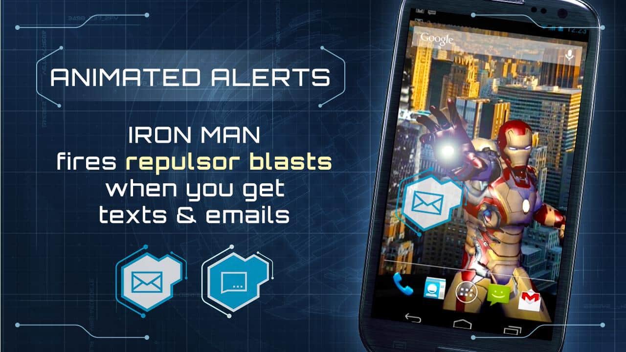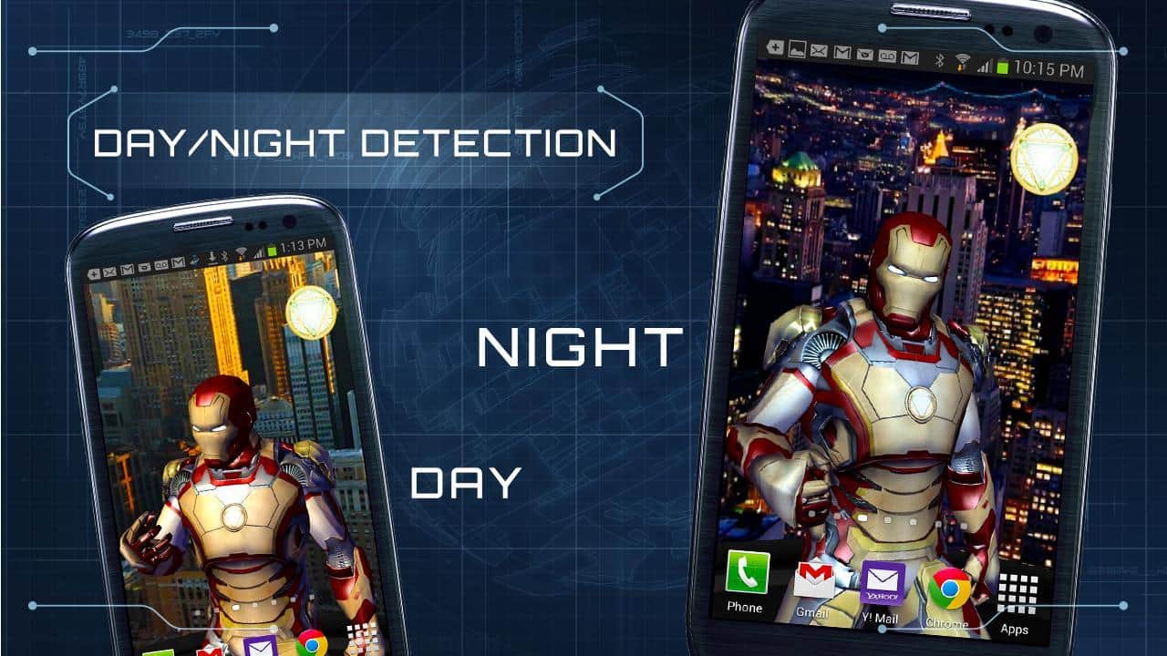 Iron Man 3 LWP - Новые живые обои на андроид посвященные самому выдающиеся событию киноиндустрии 2013 года – выход новой части Железного человека 3! Ваше андроид устройство преобразится до неузнаваемости: Новый индикатор батареи, трехмерная модель героя на фоне дня или ночи, говорящие часы и многое другое. При включении функции в настройках, Железный человек будет вас уведомлять о новых письмах и текстовых сообщениях. Стиль и красота вашего девайса значительно улучшится!