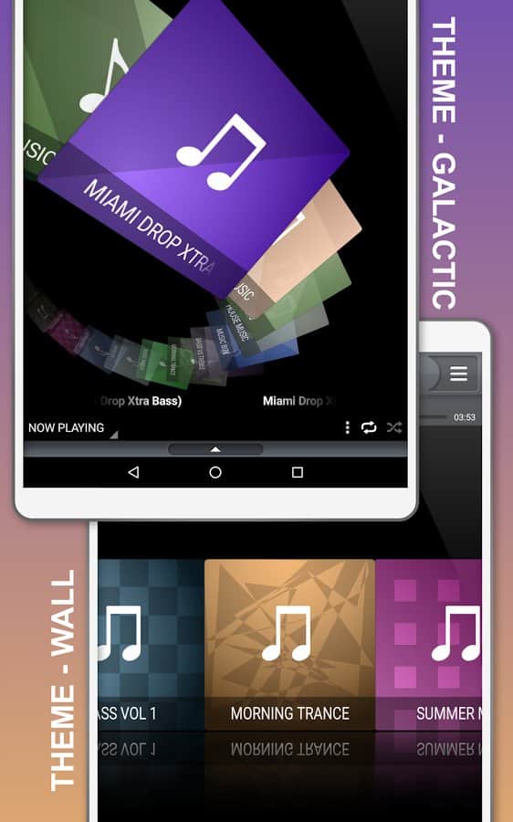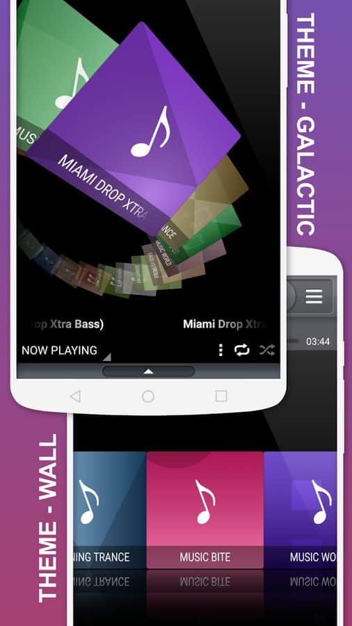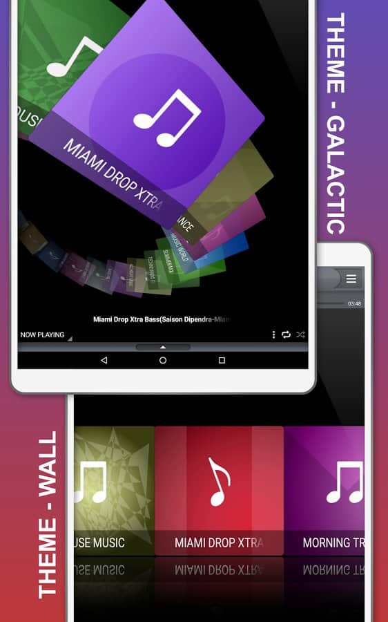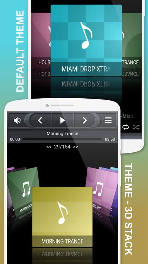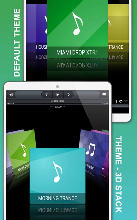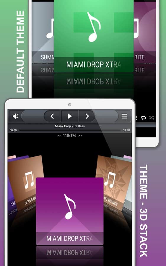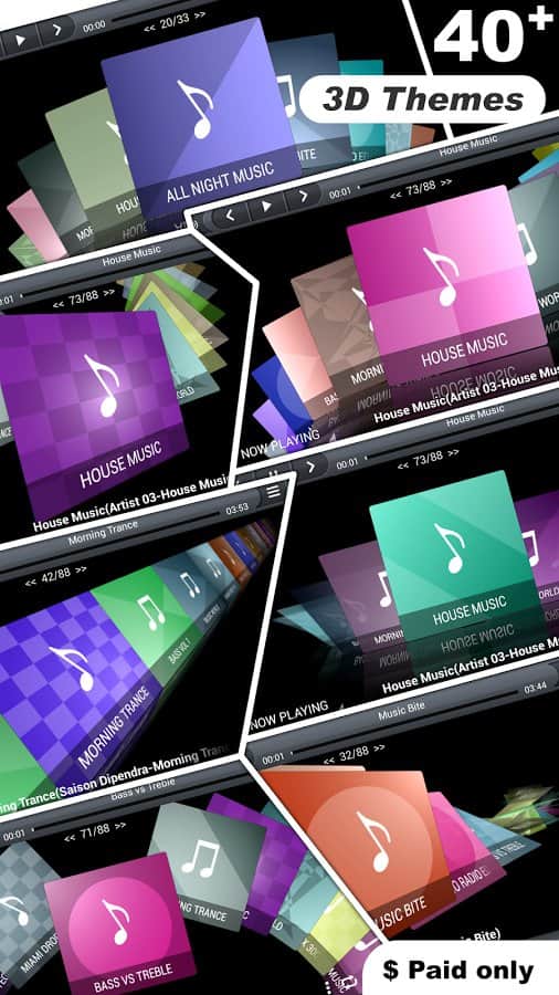 - Есть несколько предустановленных тем для 3D-просмотра медиа (аудио)