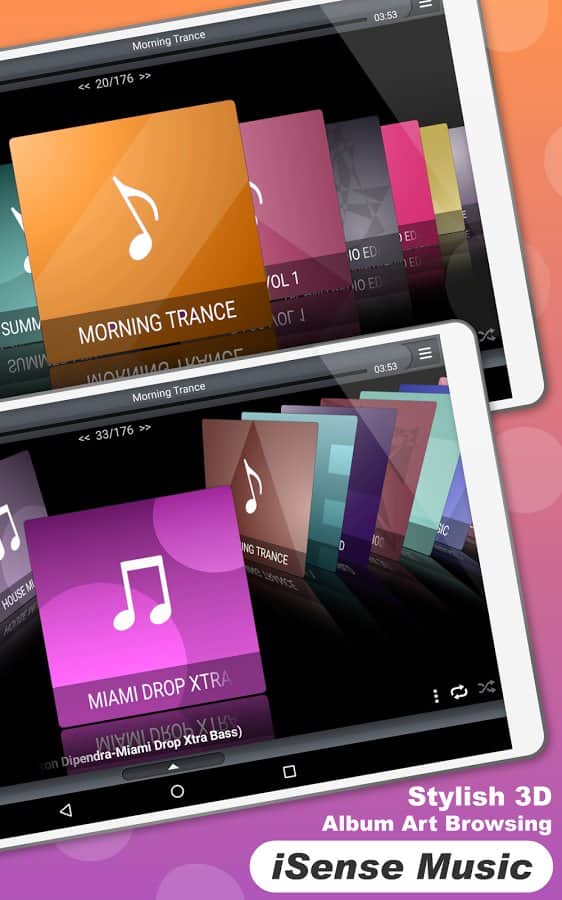 iSense Music - 3D Music Player – клевый плеер для андроид от разработчиков SmoothApps с использованием 3D отображения альбомов в различных формах. Схожесть с такими плеерами как Google Music Play, плеер iPhone, Coverflow Music Player идр, делает плеер iSense Music ничуть не хуже, так как он содержит ряд своих уникальных возможностей и особенностей. Приятного наслаждения музыкой в любое время дня и ночи!