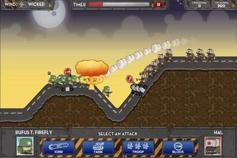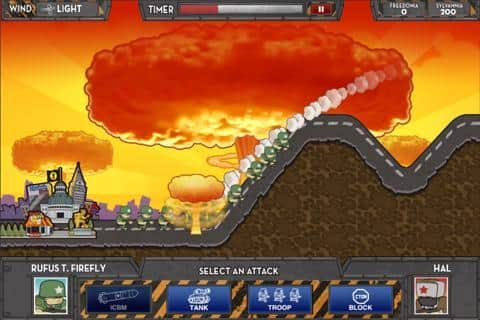 iSiege: Nuclear Option - отличная военная стратегическая игрушка для android с живописной рисованной графикой и забавными солдатами-юнитами. Вам предстоит защитить свою страну, уничтожая вражеские боевые единицы - солдат и технику. Создавайте солдат, танки, устанавливайте блокпосты , помогайте атаке ваших бойцов ракетной поддержкой - только осторожно, чтобы не зацепить своих, вообщем, делайте все возможное и невозможное, чтобы выстоять и победить! Усиливайте свою боевую мощь любыми способами и покажите где раки зимуют. Извечное противостояние Кремля и Белого Дома закончится так, как вы этого хотите!