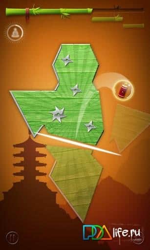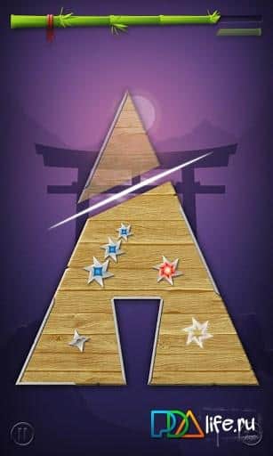 Slash - очень яркая и увлекательная головоломка в японском стиле. Вы владеете катаной и если говорить о сути, должны действовать быстро и четко. Перед вами в каждом уровне, а всего их 100, будут показаны абсолютно разные предметы - елочки, пирамиды, изображение скорпиона и пр. Внутри каждой фигуры в хаотическом порядке движутся звездочки, отталкиваясь от стенок и так беспорядочно продолжая свой путь. Ваша задача - как только звезды оказались в одной части быстрым движением отсечь пустую часть фигуры от общего тела....Как только вы отсечете от фигуры нужный процент, вы перейдете на следующий уровень. Нужный процент отображен в виде бамбуковой палочки вверху экрана, перевязанной красной лентой - как только достигнете красной ленты - уровень пройден! Кроме того, есть бонусы - динамит, помощь самурая, время, нож и пр., но их не так много, поэтому лучше надеяться только на себя!