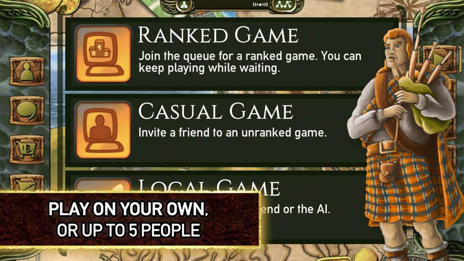 Isle of Skye: The Tactical Board Game – увлекательная настольная игра на андроид, где вы будете участвовать в битве за остров Скай. В этой игре вы будете выступать в роли вождя одного из кланов которые воюют за остров и покажите все свои навыки опытного правителя развивая свои земли и ведите грамотную торговлю для того чтобы стать королем острова Скай. Обустраивайте территории острова, добавляя различные формы такие как холмы, живописные побережья и горные хребты. Разводите скот, производите различные продукты и стройте фермы и корабли. Расширяйте и развивайте свои владения и захватите всю власть на острове.