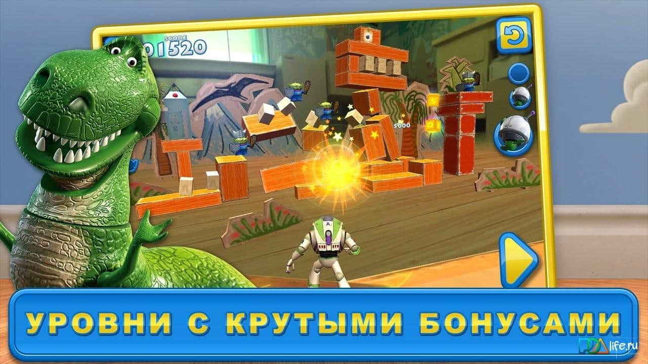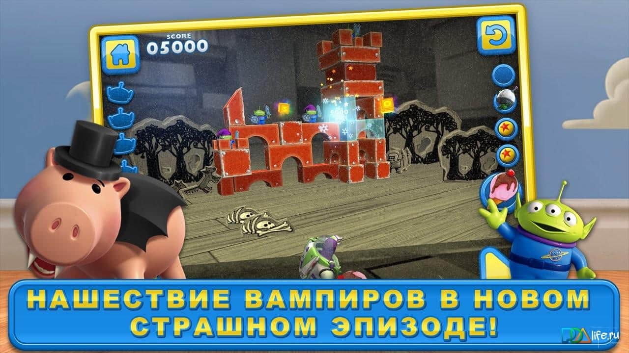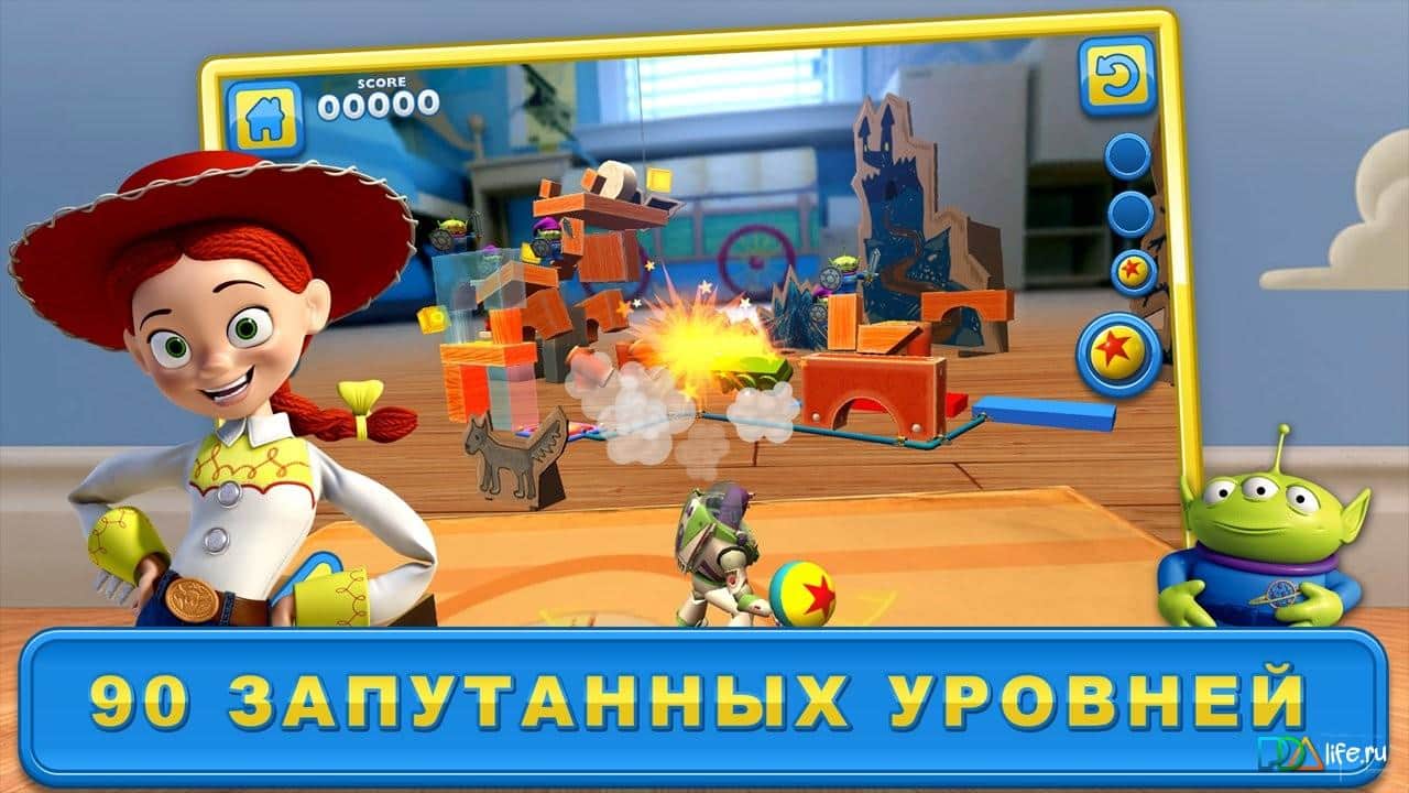 История игрушек: Городки / Toy Story: Smash It! - конечно же вам знакомо название "История игрушек" - это отличный мультфильм от Диснея, если вы не смотрели - обязательно посмотрите. Ведь сюжет игры перекликается с сюжетной линией мультфильма! Итак, вас ждет динамичный геймплей во главе с героем мультика - Базом! Перейдем ко второй части названия - Городки. Это всем известная игра, в которой битой нужно сбить конструкцию из деревянных брусков. Так и здесь - вас ждут конструкции из блоков, которые нужно разрушить, чтобы сбить сидящего сверху инопланетянина! Сбивать вам придется мячами, ловко и прицельно попадая куда нужно! Изюминкой игры и ее сложностью одновременно является то, что управление - инверсионное, т.е. двигаясь в одну сторону ваш прицел двигается в противоположную, и придется набить руку, прежде чем у вас все получится! Но это лишь добавляет азарта! Ну что ж, вперед, вас ждет 60 ярких уровней!
