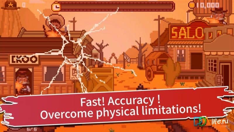 It's high noon - одна из тех игр что можно отнести к просто идеальным тайм-киллерам, стильная пиксельная графика в сочетании с динамичным, но при этом простым геймплеем поможет вам скоротать как всего лишь несколько минут, так и пару часов свободного времени. И так перед нами стрелялка выполненная в виде тира, события которой разворачиваются на просторах Дикого запада, вам же предстоит точными выстрелами уничтожать все живое попадающиеся вам вам прицел. Конечно же разработчики добавили систему развития, разблокировки оружия и прочие элементы призванные разнообразить игровой процесс.