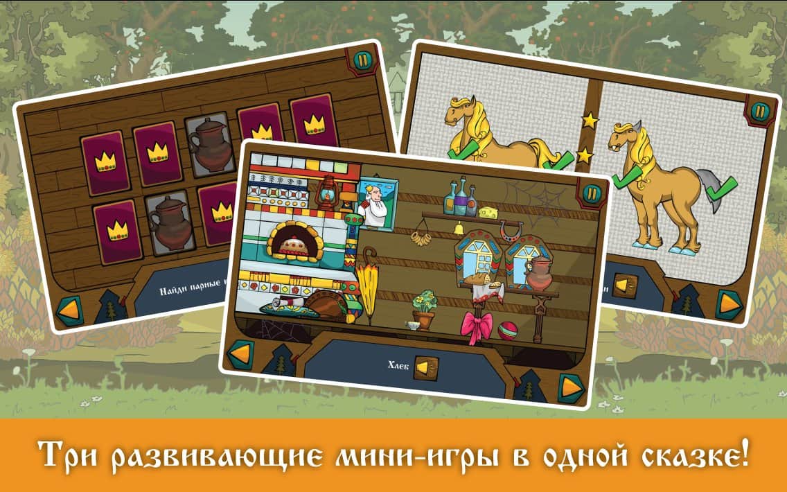 Иван-царевич и Серый волк - отлично иллюстрированная сказка для детей дошкольного возраста. В этой сказке - игре ваш ребенок вновь познакомиться с уже знакомыми ему героями Иваном-царевичем и Серым волком. Графика этой игры выполнена в традициях русской иллюстрации, где вы и ваш ребенок сможет весело проводить время, развиваясь и помогая Ивану – царевичу решать непростые задачки. В игре находятся три увлекательные мини игры такие как: «найди предмет», «memory» и «найди отличия» которые обязательно понравятся вашему ребенку. Играйте в эту игру со своим ребенком и прививайте ему вкус к хорошим играм.