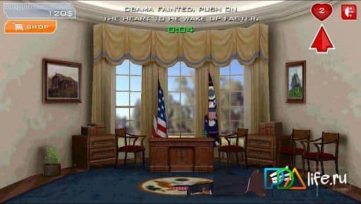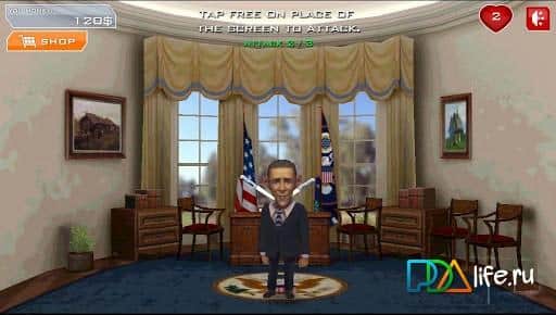 Избей Обаму! - всем недовольным действиями Белого Дома или президента США Барака Обамы выпустили такую аркаду для андроид. В вашем распоряжении имеется арсенал огнестрельного и холодного оружия, а также разнообразие способов избиения. А главная роль отведена Обаме в качестве объекта для битья. Смысл прост - чем больше нанесете урона, тем больше получите денег!