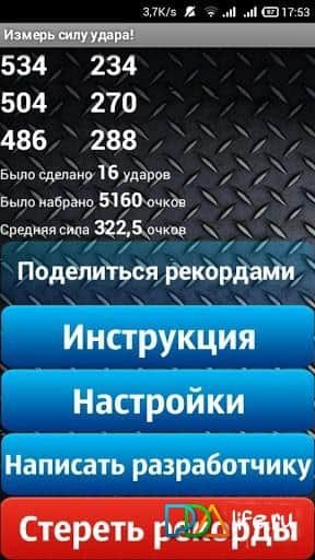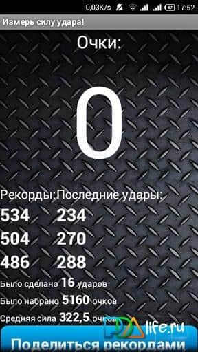 Измерь силу удара. Bumpmeeter - приложение для андроид, которое можно равноправно отнести как к спорту, так и простому симулятору. Как понятно из названия, вы сможете проверить силу вашего удара. Для этого совсем не нужно бить ваше устройство что есть сил или кидать его о стену. Достаточно сжать телефон в руке и резко взмахнуть им в воздухе. Встроенные в приложение датчики ускорения оценят ваш удар в баллах и покажут результат, которым вы кстати, сможете похвастаться в соцсетях.