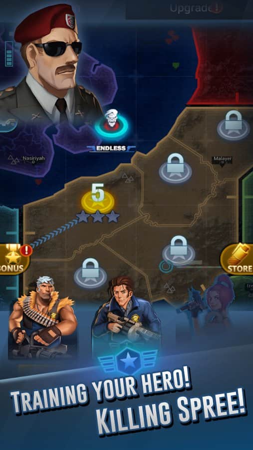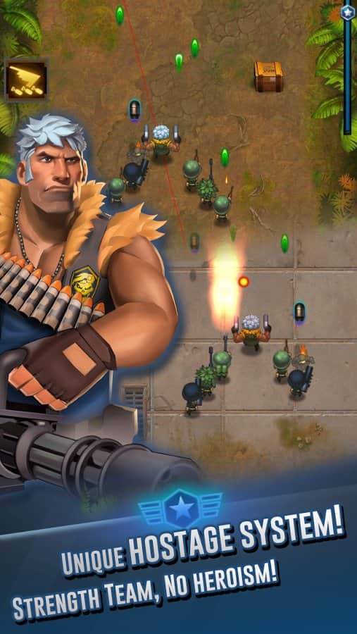 Jackals: Clash mission – скролл-шутер на андроид, где вы будете управлять отважным коммандосом, который в одиночку решил спасти солдат из плена. Ведите бесстрашного героя вперед и обходите многочисленные ловушки и избегайте вражеских пуль. Перемещайте героя из стороны в сторону и по пути помогайте пленным солдатам освободиться, как только вы это сделаете, солдаты присоединяться к вам и будут помогать вам продолжать миссию. Используйте для борьбы с врагами мощное и современное оружие и ведите непрерывный огонь по врагам. Проходите все увлекательные миссии игры и применяйте в бою разнообразное оружие и боеприпасы.