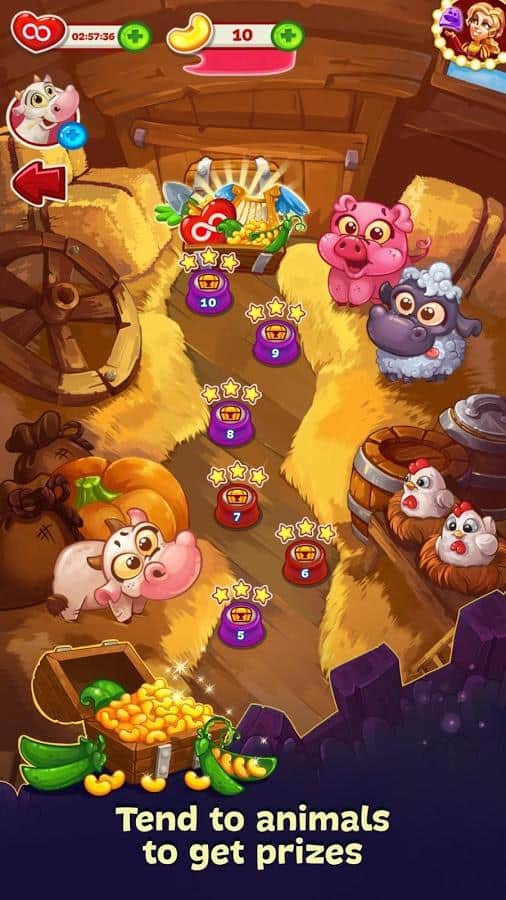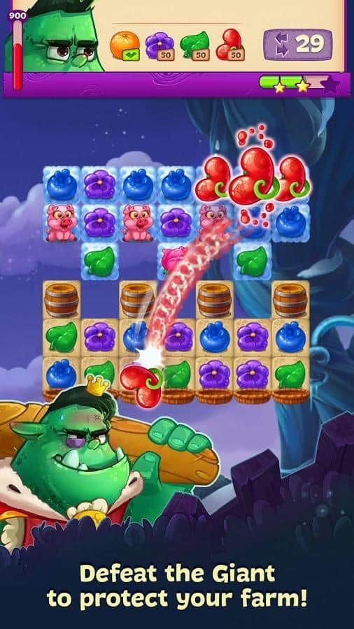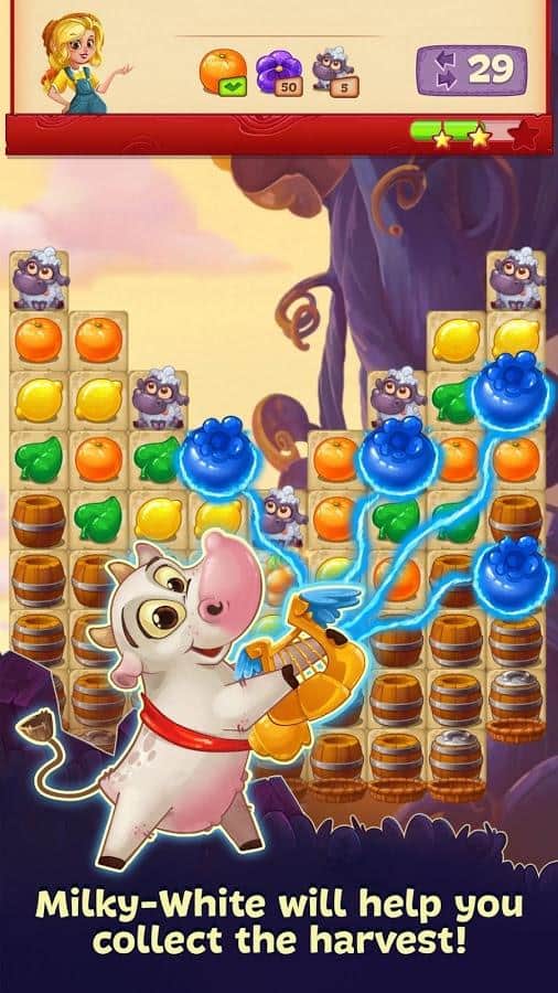 Jacky's Farm – игра из жанра три в ряд на андроид, где вы станете фермером и будете выполнять различные миссии. В этой игре вы отправитесь в увлекательное путешествие, где будете помогать Джеки поймать великана, который пришел на ее ферму и обворовал ее. Поднимайтесь за великаном на бобовое дерево и составляйте ряды из трех и более объектов для того чтобы получить награды и бонусы. Играйте в эту игру с друзьями и весело проводите свое свободное время при этом получая удовольствие от красивой графики и захватывающего геймплея. Откройте для себя мир сказок заново и занимайтесь выращиванием овощей.
