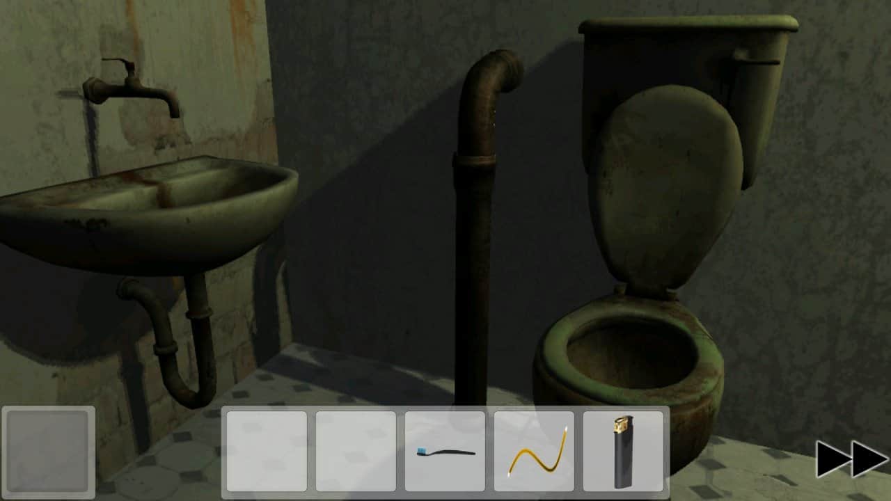 Очередная игра для гениев, которую невозможно пройти, по крайней мере мне. Сначала нужно каким-то образом высмотреть предметы, которые фиг найдёшь в этой темени, а потом ещё придумать, куда их совать. Если провод ещё как-то ассоциируется у меня с электрощитком, то вот зубная щётка, как отмычка, ну вот никак. Ни разу в своей жизни я не видел взлома дверного замка с помощью зубной щётки. Теперь в третьей комнате я обнаружил (фотка) две палки, которые, видимо, нужно открутить, мне интересно, разраб вообще задумывался о том, что он творил. Ведь функцию «нагнуться» он нам давать не решился. А после того, как я нашёл рубль, я обошёл и обтыкал все комнаты и все вещи этим рублём, но ничего не помогло, в итоге меня закрыли в первой комнате, видимо, отмычка сломалась. Ну и, думаю, это к счастью, а то не известно, что было бы там дальше, а этого мне знать не очень-то и хочется. 1 найденный обосранный толкан, который я хотел почистить зубной щёткой из 10.