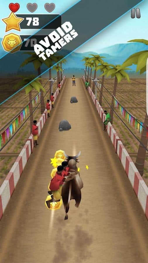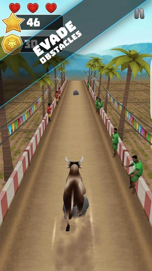 Jallikattu Run – раннер на андроид, где вы возьмете под свой контроль огромного быка и проведете его по многочисленным трассам. Ведите своего быка по узкой трассе, на которой находятся зрители и старайтесь избегать столкновений с людьми, которые будут поджидать вас чтобы запрыгнуть вам на горб. Задача людей заключается в том, что им необходимо как можно дольше продержаться на горбу быка и установить свой рекорд. Бегайте по многочисленным мирам и избегайте столкновений с людьми и другими препятствиями. Играйте в эту игру и добивайтесь отличных результатов, поднимаясь все выше в таблице лидеров.