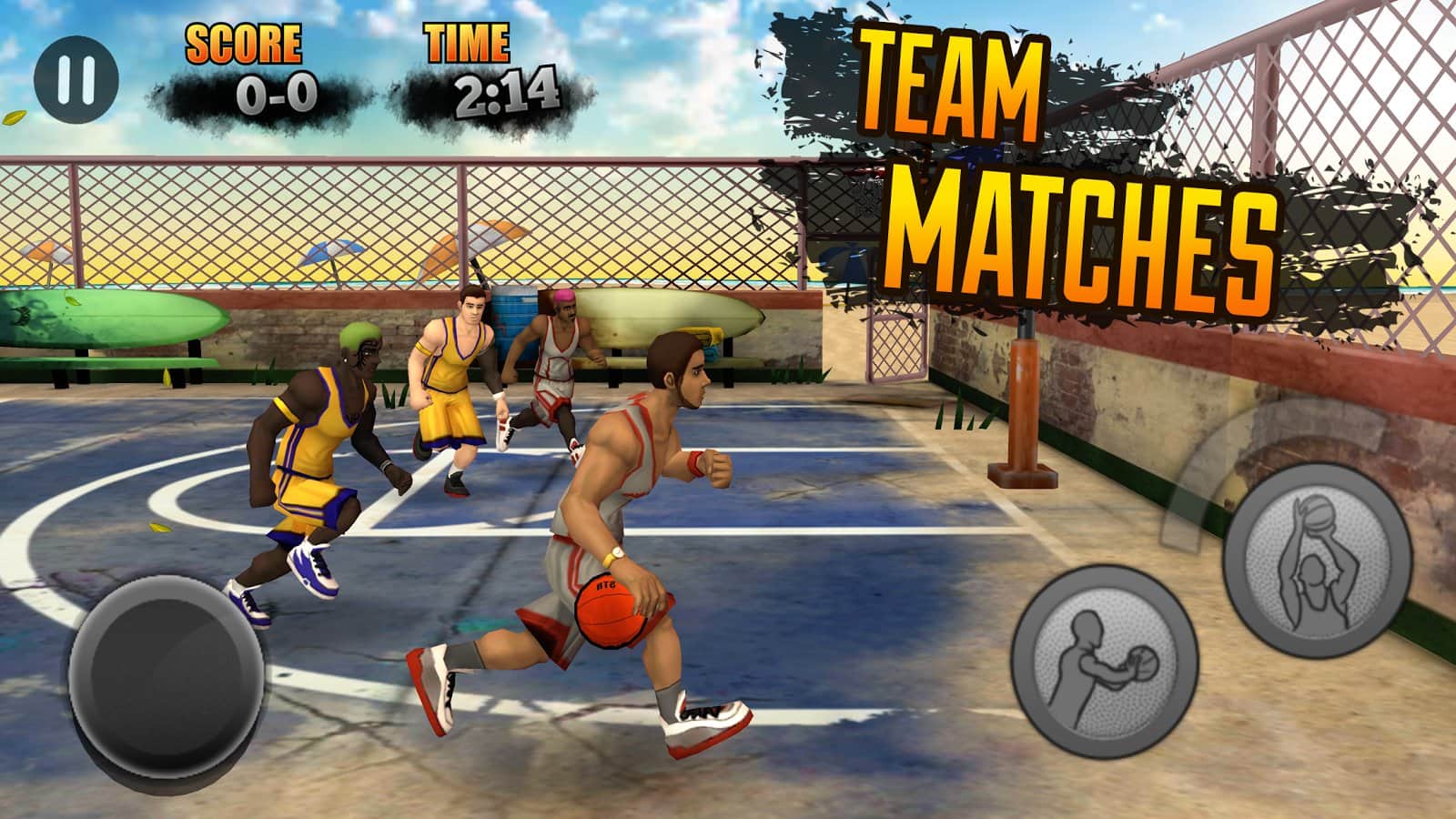 Jam City - Новый вариант баскетбола на андроид, действия которого проходят на улице. Сдесь нет больших команд и профессиональных площадок. Тут команда состоит из двух игроков, а играют они во дворе. В игре собрано неплохое сочетания простоты и увлекательности геймплея. Движение игроков и полеты мяча так же впечатляют.