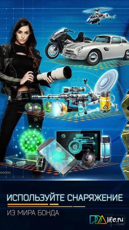 JAMES BOND: WORLD OF ESPIONAGE – официальная игра на андроид, где вам предстоит спасать мир в качестве агента 007. В этой игре вам предстоит взять на себя роль главного агента Джеймса Бонда и создать свое секретное агентство МИ-6. Нанимайте на службу агентов и обучайте их всем премудростям и тонкостям которые вы знаете, а также развивайте в каждом из них уникальные способности, которые пригодятся на задании. Отправляйте своих учеников вместе с другими агентами на задания различной сложности и проверяйте их на деле. Для своих миссий используйте только самое лучшее высокотехнологическое снаряжение, изготовленное в ваших лабораториях. Владейте ценной информацией и станьте самым лучшим агентом, занимая лидирующие позиции во всем мире. В этой игре перед вами откроется целый мир с роскошными автомобилями, красивыми женщинами и многочисленными злодеями.