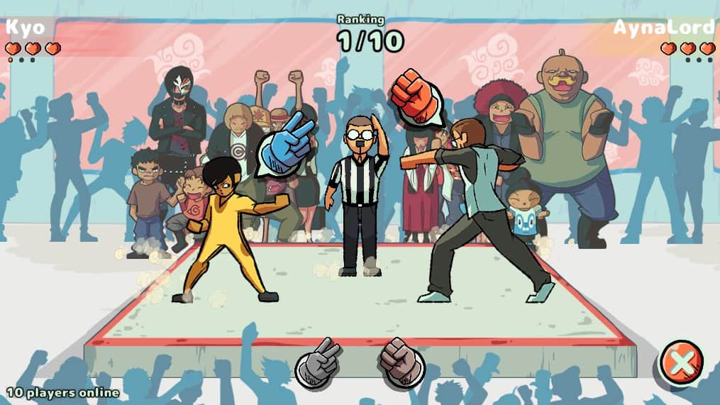 JanKenUP! - Игра «Камень, ножницы, бумага» еще не была такой забавной и интересной! Вы удивитесь, когда увидите место, где по этой игре есть серьезные сражения на ценные призы! Путь новичков развивается медленно, они могут участвовать и набирать популярность. Также, им доступен пока 1 персонаж, чего не скажешь про профи. Всего есть 2 режима: одиночный (против ботов) и локальный (против игроков со всего мира или друзей). Отправляйтесь на турниры, побеждайте все 3 раунда и двигайтесь дальше по карьерной лестнице.