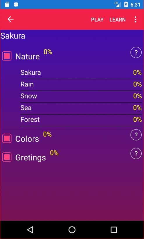 Приложение Japanese Learning является простым способом изучения японских слоговых азбук и слов посредством игровых элементов.