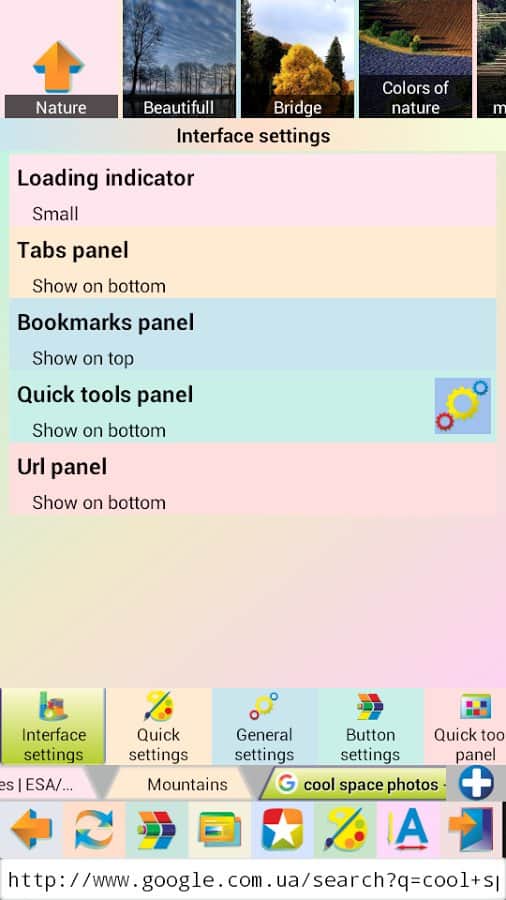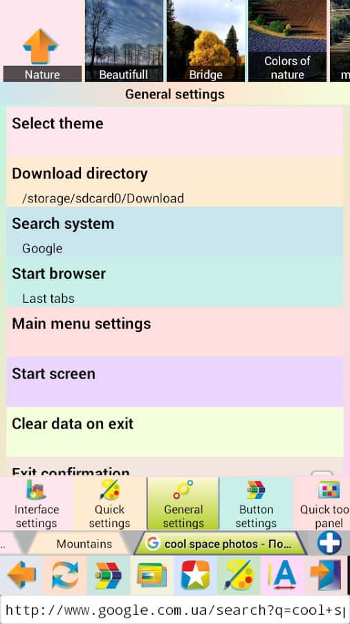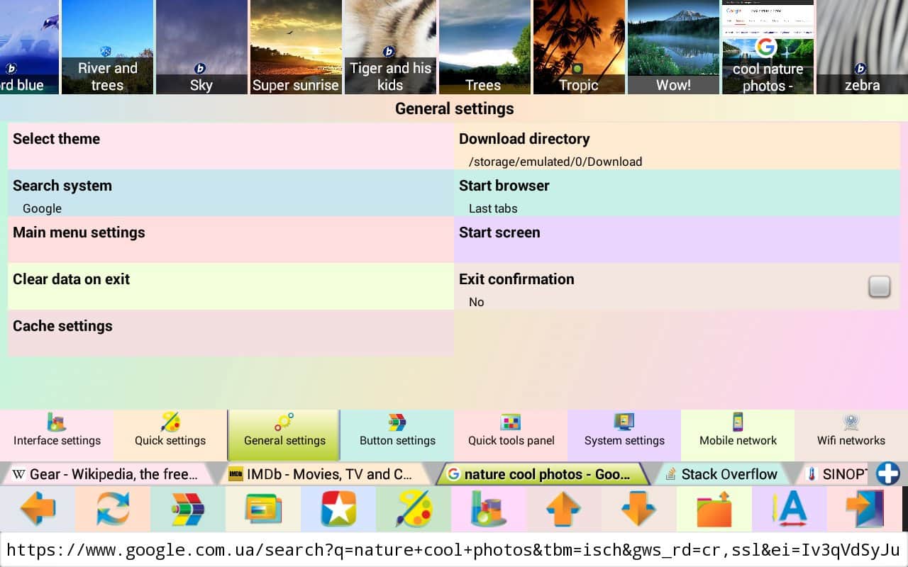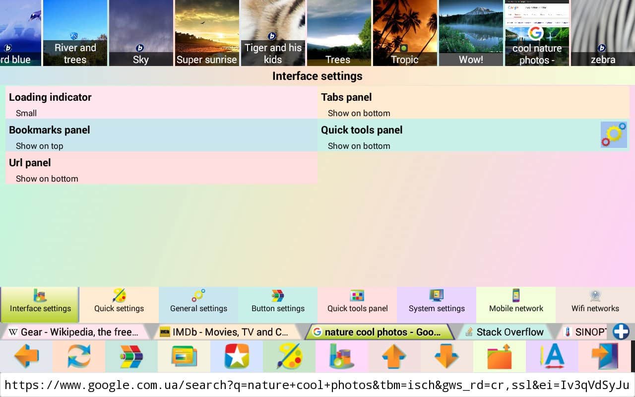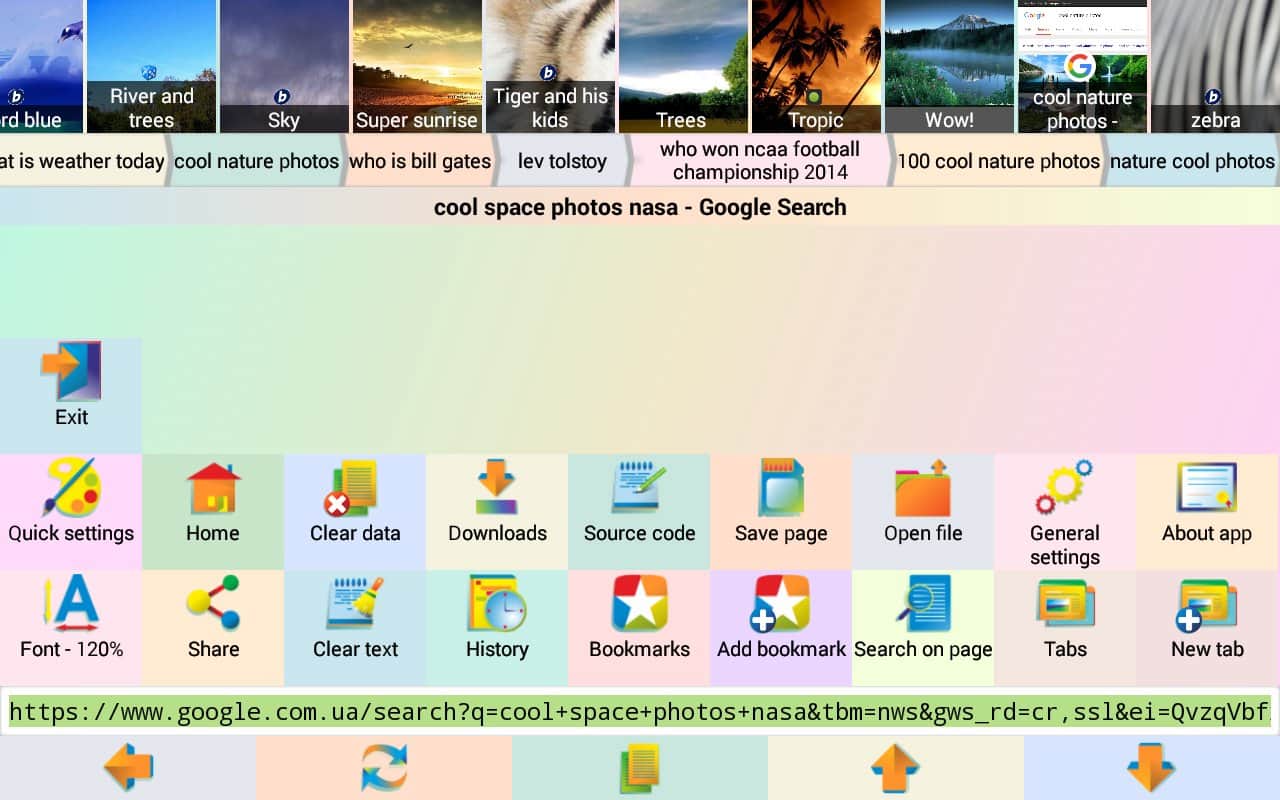 Jbak Browser – простой, лёгкий в использовании браузер с различными настройками, позволяющими подстроить браузер под свои нужды. Работает приложение быстро. Оперативной памяти есть не много и на телефоне занимает мало места. Браузер позволяет вводить текст с ошибками, есть кнопка «мне повезёт». После того как ввели запрос нажимаем эту кнопку и браузер перенаправляет вам на нужную вам информацию, минуя поисковую выдачу.
