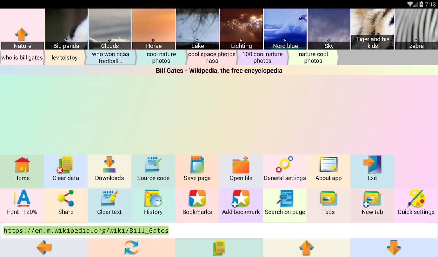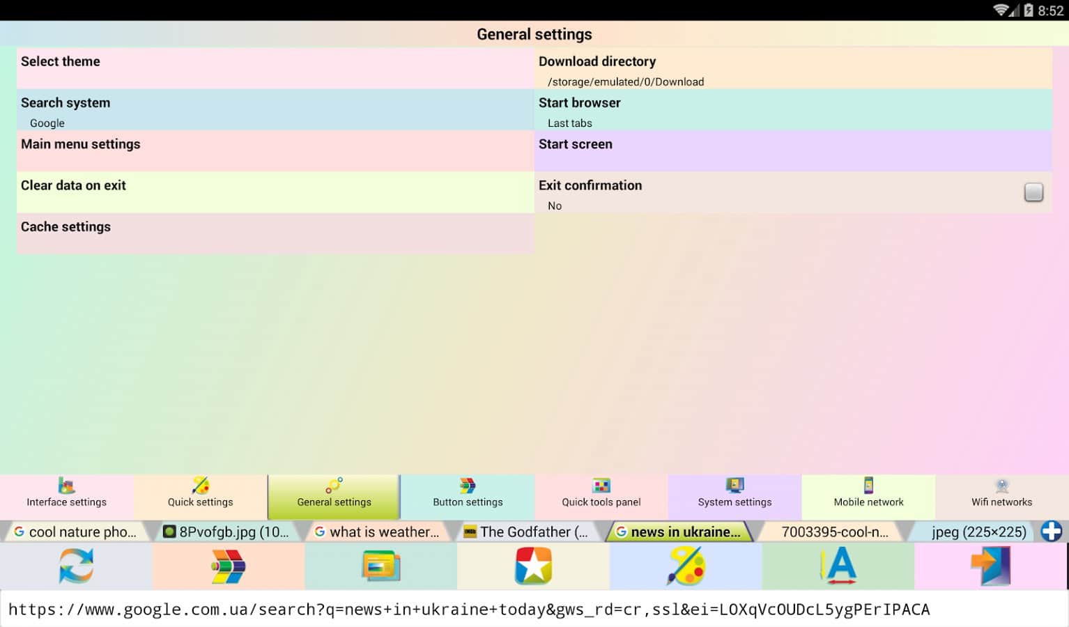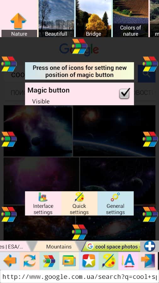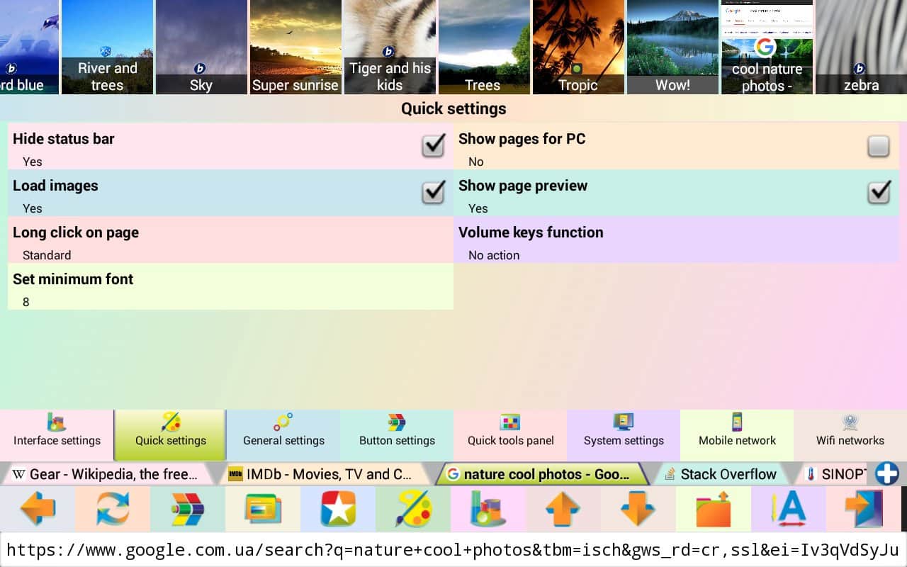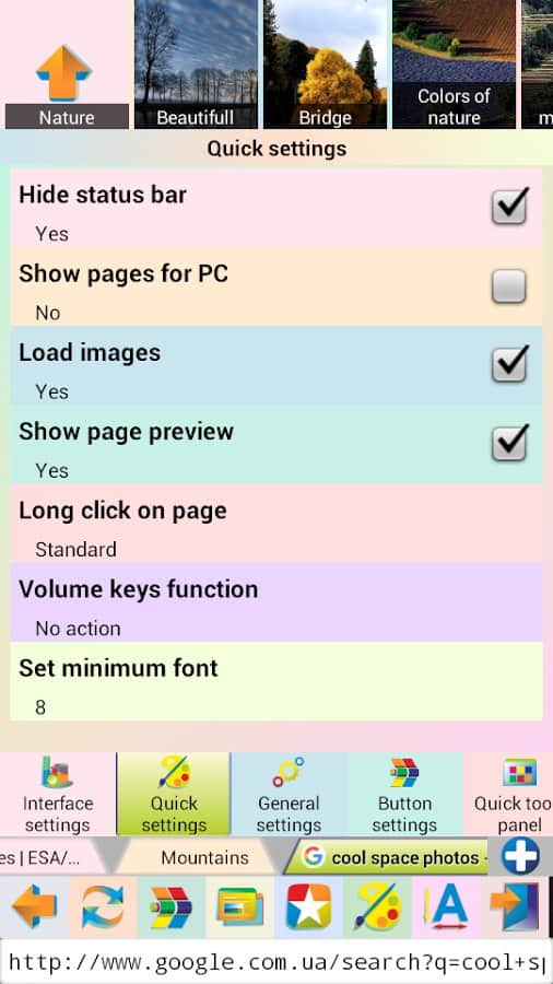 Jbak Browser – простой, лёгкий в использовании браузер с различными настройками, позволяющими подстроить браузер под свои нужды. Работает приложение быстро. Оперативной памяти есть не много и на телефоне занимает мало места. Браузер позволяет вводить текст с ошибками, есть кнопка «мне повезёт». После того как ввели запрос нажимаем эту кнопку и браузер перенаправляет вам на нужную вам информацию, минуя поисковую выдачу.