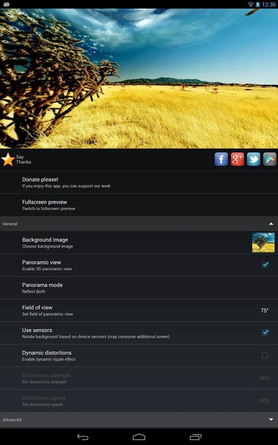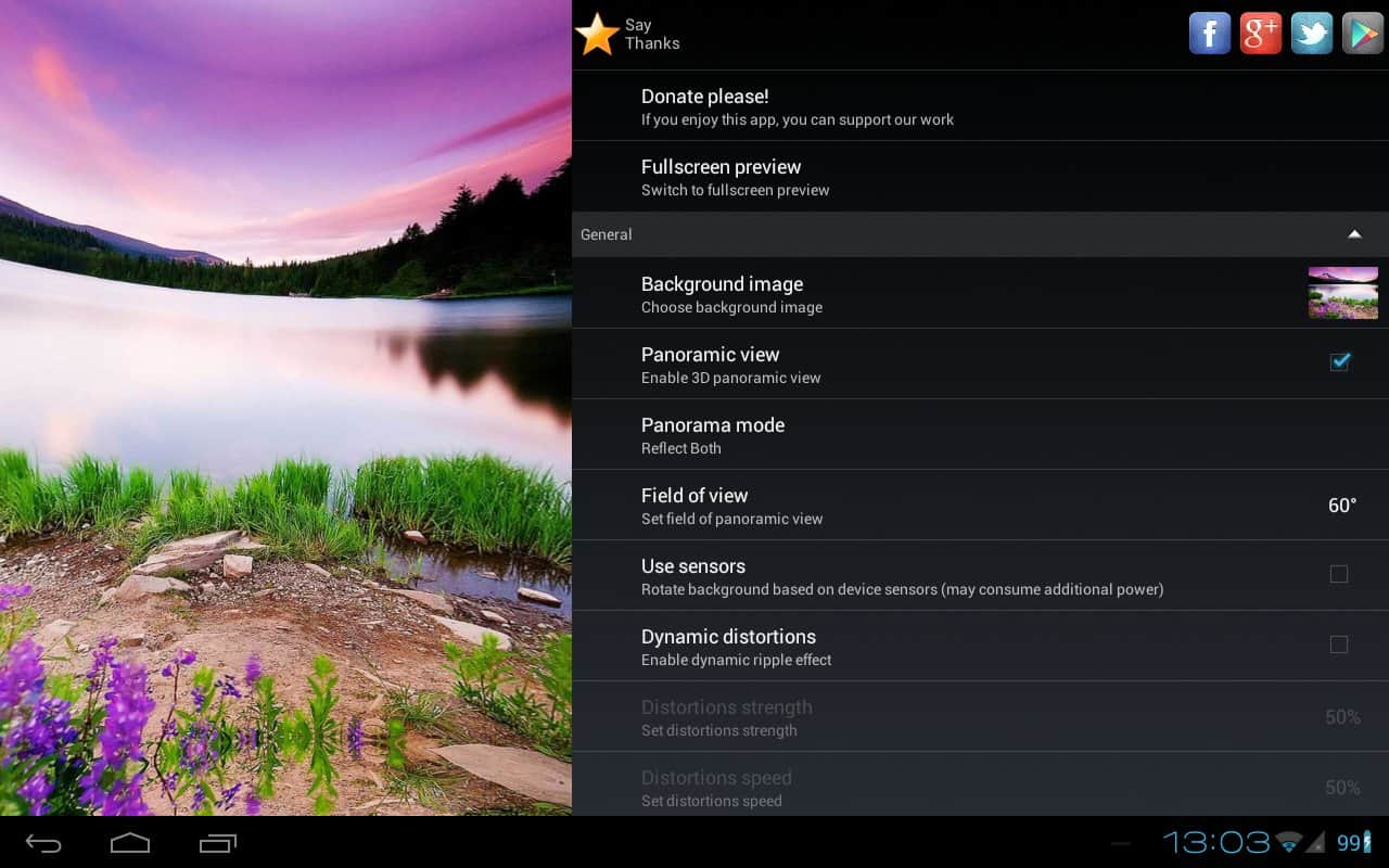 Экран-панорама (Panoramic Screen) – красивое приложение (живые обои), которое создает 3D-панорамы из обычных снимков, картинок из галереи или обычных обоев. Используя большое количество настроек вы можете создать не только панорамы, но и приметить к снимкам эффект динамических искажений, слайдшоу и многое другое! Скачиваем!