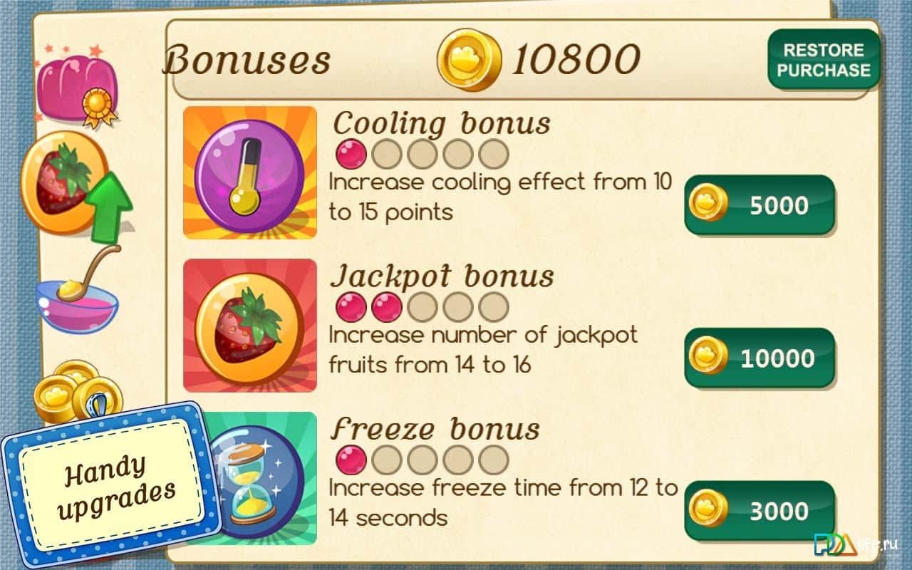 Jelly Fruit - игра на аndroid, в которой вам предстоит делать фруктовое желе. Ваша задача заключается в следующем нажимая на экран вы можете делать желе твердым или мягким, воспользуйтесь пока желе жидкое добавляйте туда сочные фрукты и не дайте различным насекомым попасть туда. Тонны различных фруктов и 48 рецептов фруктового желе не дадут вам скучать. Также вас ждут 3 режима игры и красочная HD-графика.