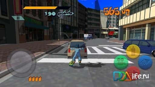 Jet Set Radio - замечательная игра про молодёжь катающуюся на роликовых коньках от знаменитой студии Sega. Эта ирга давно уже выходила на игровую приставку SEGA Dremcast и терерь появилась на андроид устройствах. Выполняйте головокружительные трюки, разрисуйте стены граффити и соперничайте с другими городскими бандами. В игре отличная графика и добавлены новые фишки специально вашего мобильного устройства! Музыкальные темы перекочевали прямиком с приставки и это является огромным плюсом. Выбирай одного из 10 уникальных персонажей и вперёд за новыми приключениями!