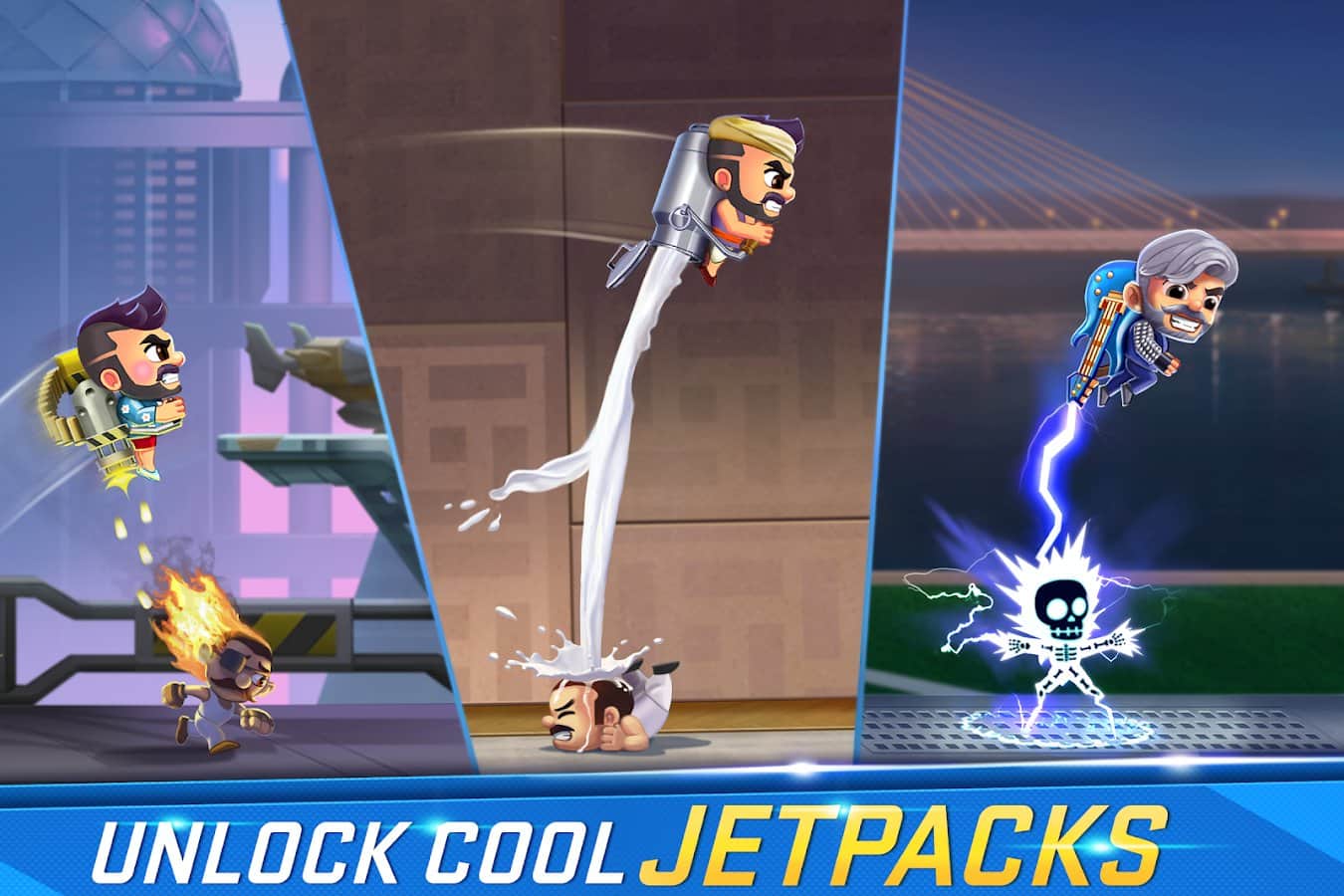 Jetpack Joyride India Exclusive - Action Game – динамичная игра на андроид, где вы будете управлять отважным героем. В этой игре вы возьмете под свой контроль главного героя и проведите его по трем различным мирам сражаясь с многочисленными врагами. Сражайтесь с сильными боссами, используя реактивный ранец, превращаясь в мощного робота или гоняя на мотоцикле. Бросайте вызов игрокам со всего мира и участвуйте в ежедневных турнирах, чтобы заполучить отличные награды.