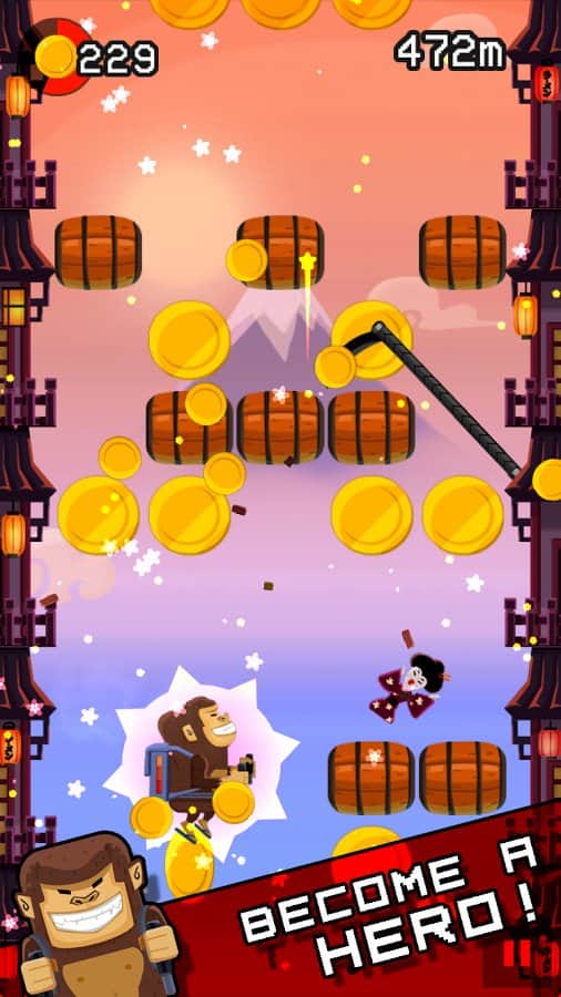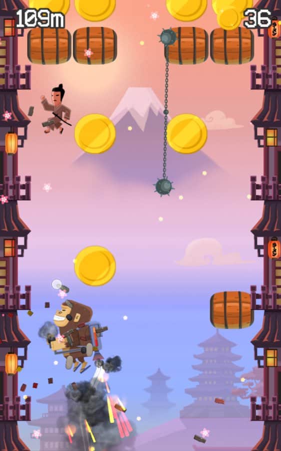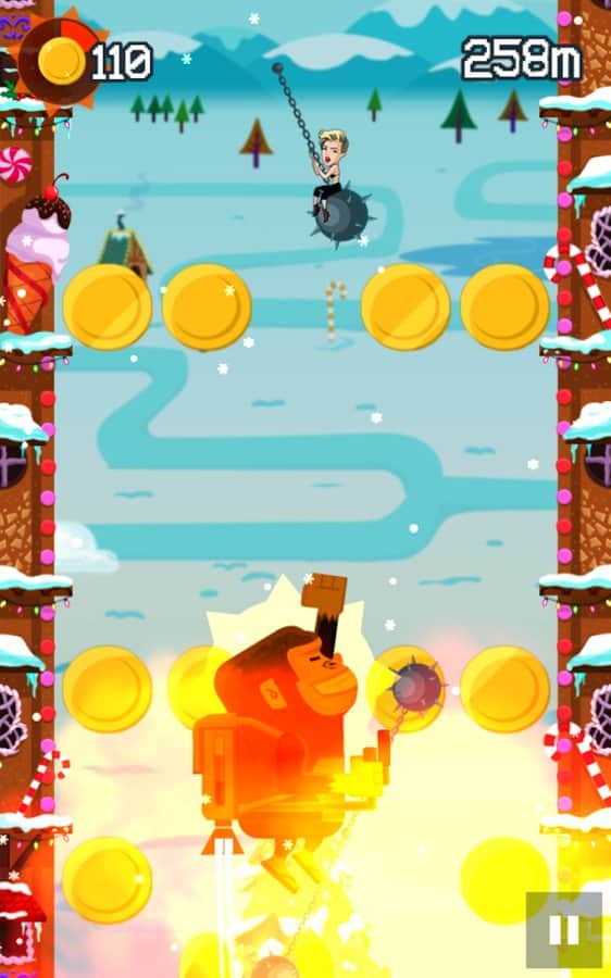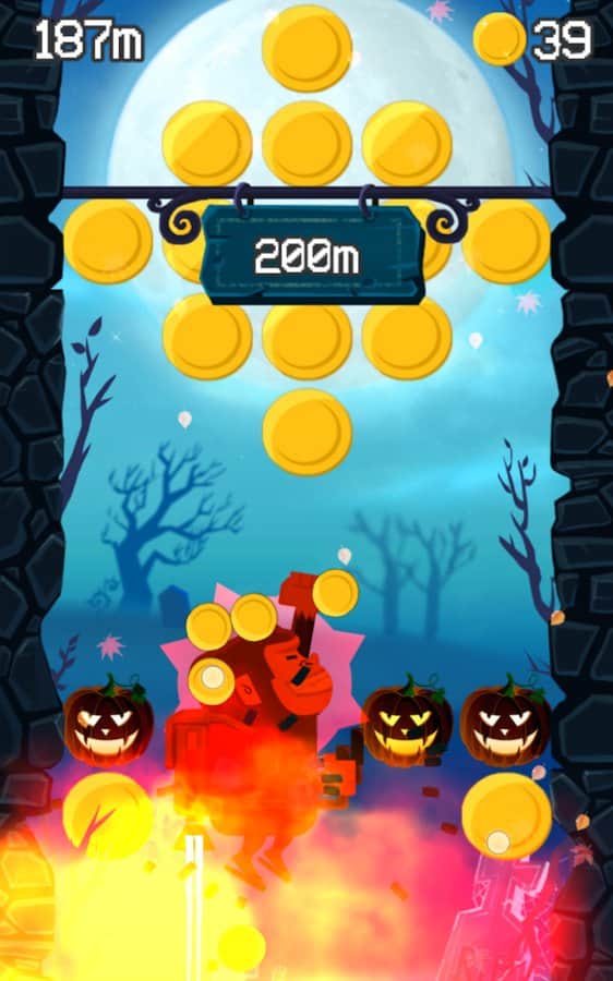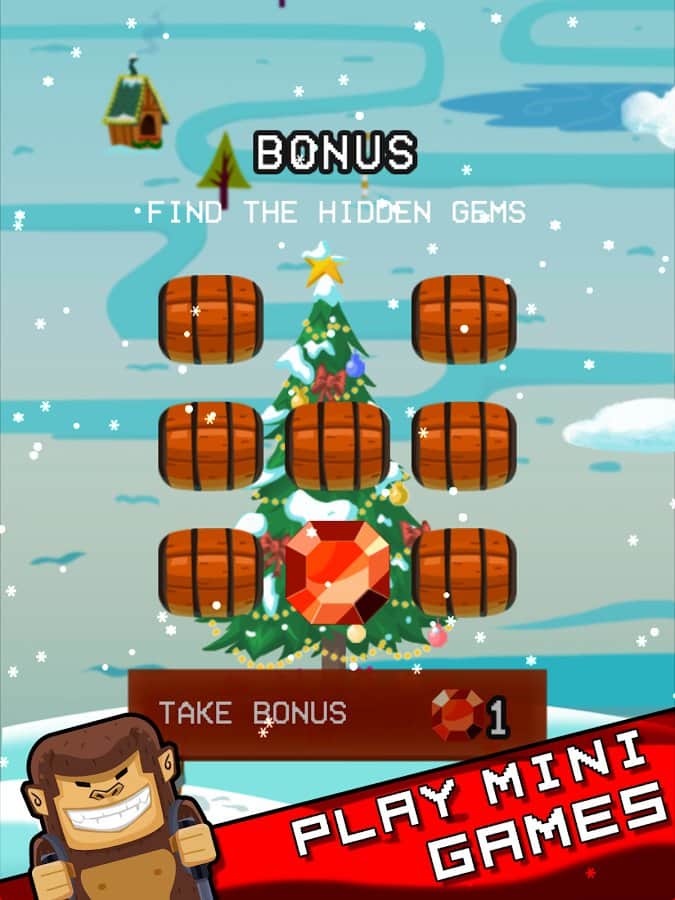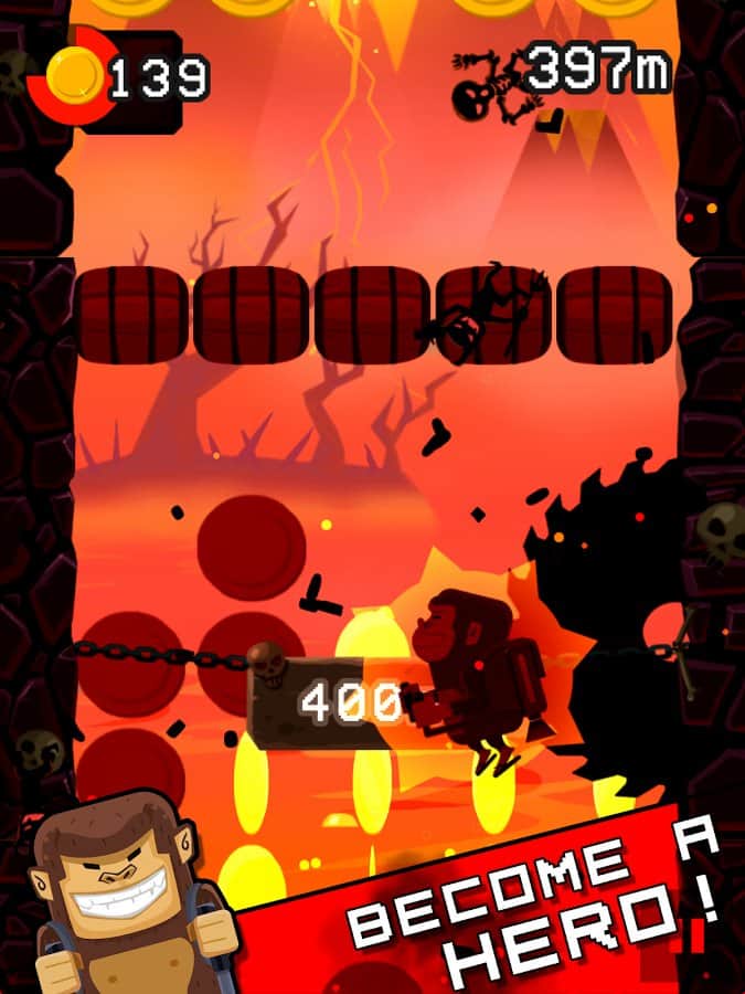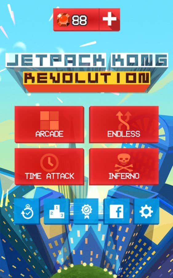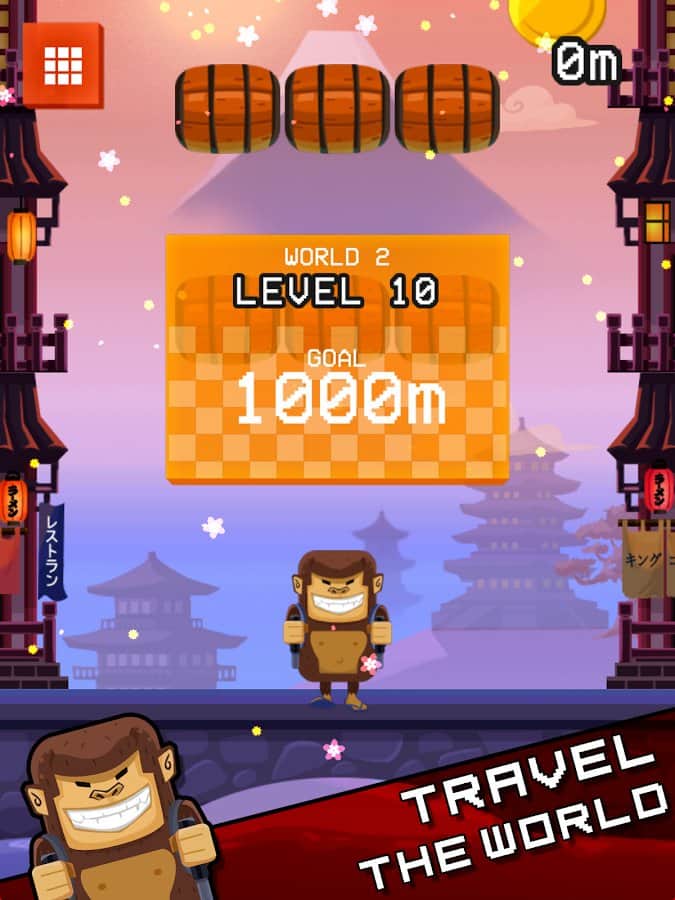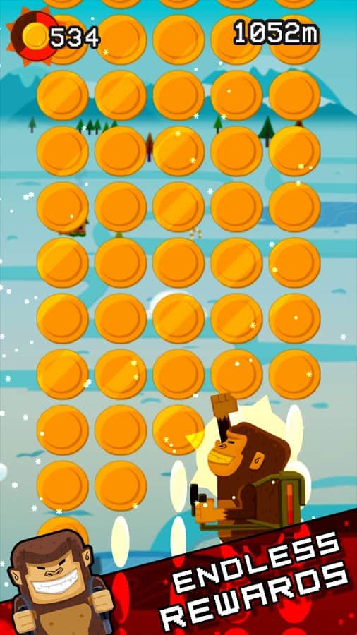 Jetpack Kong Revolution – бешенная обезьяна с реактивный ранцем летящая всё время вверх и избегающая различные препятствия порадует многих мобильных геймеров. Для начала вам необходимо сбежать с зоопарка, а потом уже думать о коварном плане о всемирном господстве. Управление простое, в две кнопки. Одна отвечает за поворот влево, другая за поворот вправо. Избегайте препятствия и различные опасности, собирайте монетки, самоцветы и другие полезные предметы. В игре представлено 4 режима игры. Каждый выберет себе тот, который ему больше нравится. Присутствует мировая таблица лидеров.