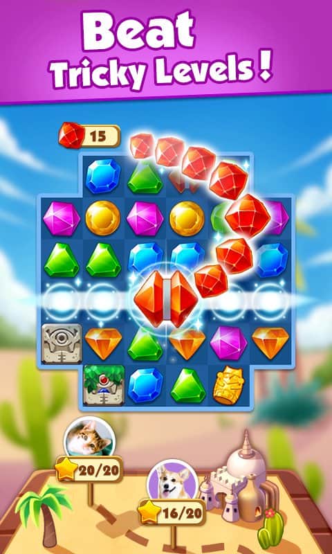 Jewel Adventure - аркадная головоломка из серии три в ряд события которой будут развиваться в самых экзотических и неизведанных уголках нашей планеты, например в джунглях или же песках Египта, при этом проходя уровень за уровнем вы будете узнавать шаг за шагом детали сюжета. Дополняет приключенческий элемент классический игровой процесс, приятная рисованная графика, огромное количество уровней, а так же различные квесты и задания.