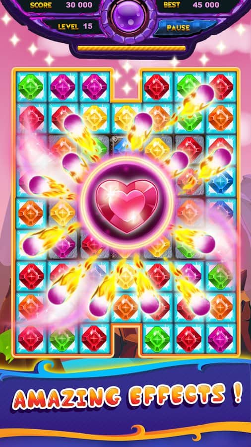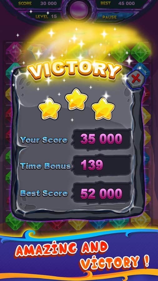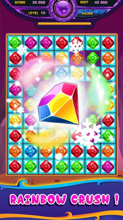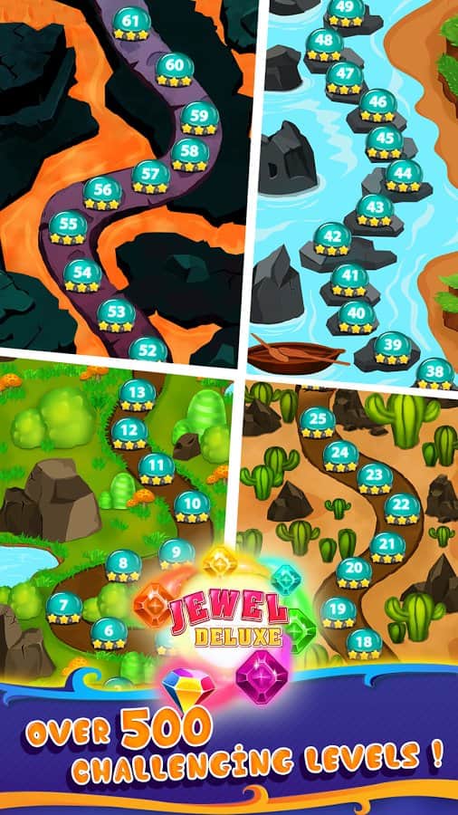 Jewel Deluxe – захватывающая игра на андроид, из жанра три в ряд. В этой игре перед вами окажется поле, заполненное разноцветными кристаллами, вашей задачей будет составлять ряды из кристаллов и взрывать их. Очистите все поле от кристаллов за меньшее количество ходов и наберите максимальное количество очков. Применяйте в игре многочисленные усиления и бонусы и как можно быстрее проходите все уровни игры. В игре вы найдете более 300 уровней и два режима игры аркадный и классический. Старайтесь составить как можно длиннее ряды из камней и заполучить по три звезды на каждом уровне. Игра отлично подойдет для того чтобы весело проводить свое свободное время и соревноваться с друзьями за лучшие результаты.