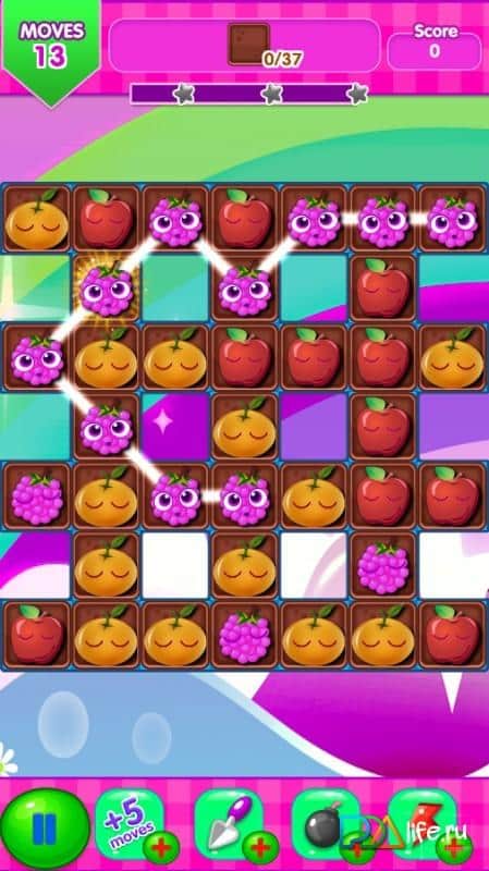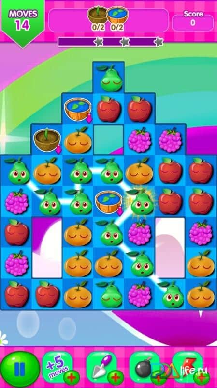 Jewel Fruit Mania - Увлекательная игра из серии 3 в ряд, в которой вам предстоит соединять между собой различные фрукты, одинакового цвета. Задание будет заключаться в том, что бы собрать как можно больше фруктов, ну либо собрать определенное количество за отведенное время. Так же вы сможете использовать различные бонусы, что бы ускорить процесс их сбора, а если вы сможете собрать за раз очень много, то получите временные усиления. Игра весьма забавная и интересная, и подойдет для любого возраста.