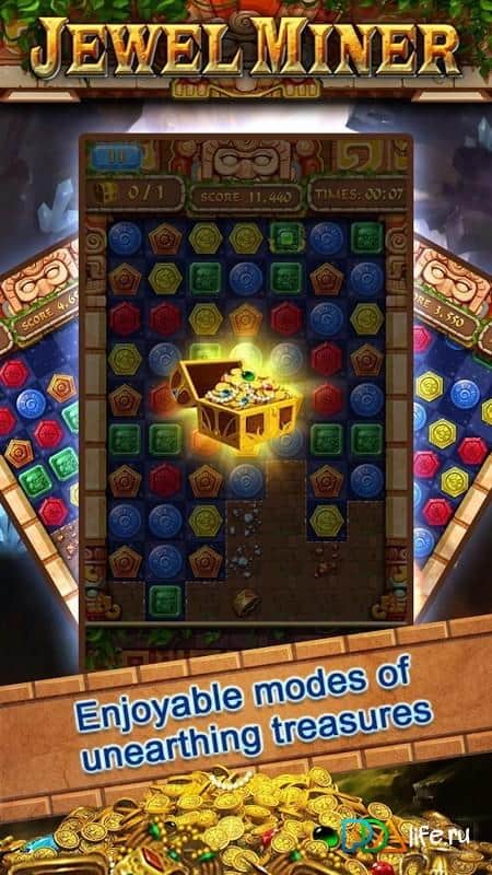 Jewel Miner – игра «три в ряд» с четырьмя режимами игры по сбору драгоценных камней. В этой игре вы отправитесь в захватывающее приключение, где будете складывать драгоценные камни и пытаться добраться до сокровищ. В игре есть четыре разнообразных режимов игры: