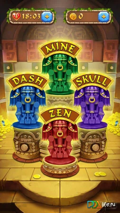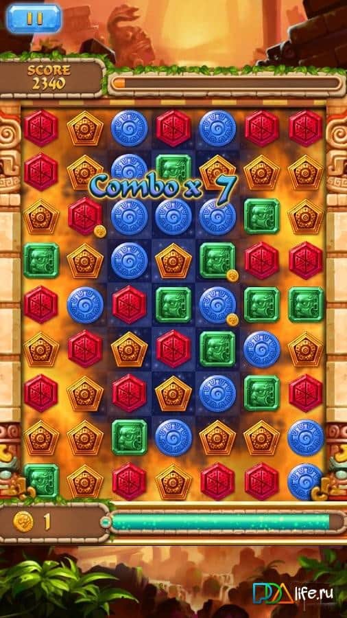 Jewel Slash - Окунитесь в мир приключений, где вы будете собирать сокровища майя. Собирайте одинаковые плитки по три и более и проходи уровни. Если вы соберёте одинаковые плитки более трёх, то вы получите «комбо». У вас будут 4 режима игры: выбирайте на свой вкус. Насладитесь великолепной графикой и звуковыми эффектами игры!