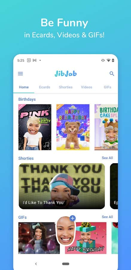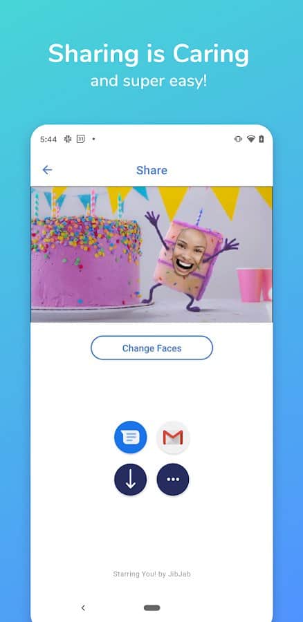 JibJab: Funny Video Maker - Больше 84 миллионов людей по всему миру используют именно это приложение для создания интересных открыток на праздники, видеоклипов, GIF-файлов и прочего! Снимите на камеру телефона собственное лицо и выберите шаблон, в каком вы хотите быть, где вы автоматически превращаетесь в популярную звезду, ковбоя, кусок торта, подсолнухом или другим персонажем, предметом. Найдите необходимые файлы на все случаи жизни: день рождение, Рождество, день матери или отца, Пасху, Новый Год, Хэллоуин, день святого Валентина, прочее.